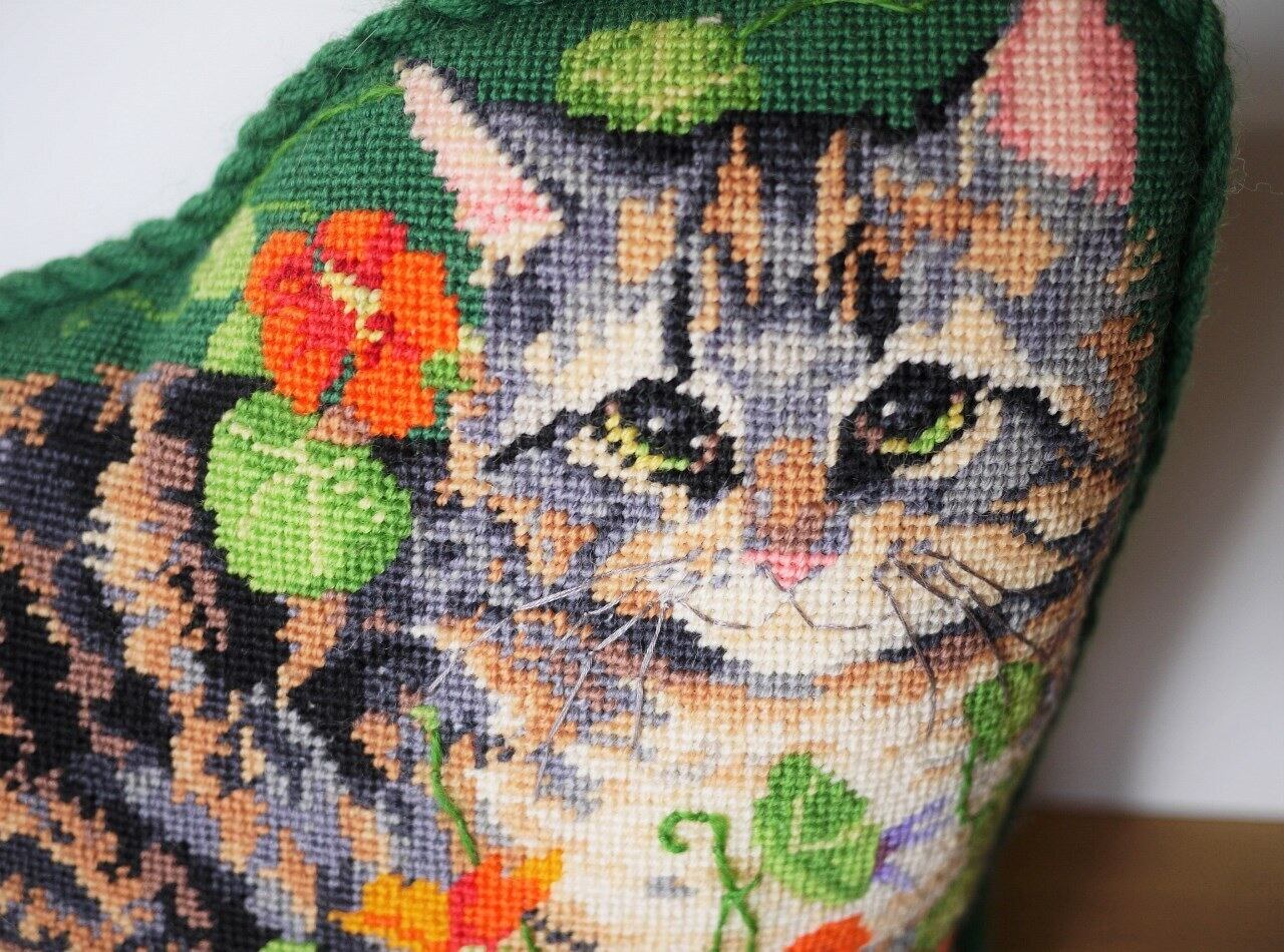猫さん刺繍クッション ニードルポイント ドイツヴィンテージ