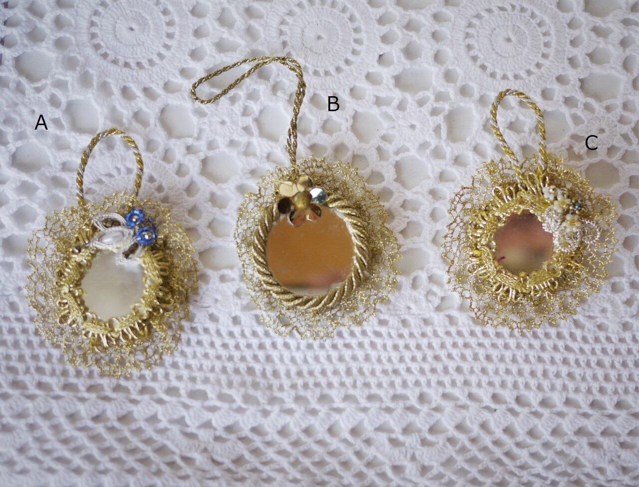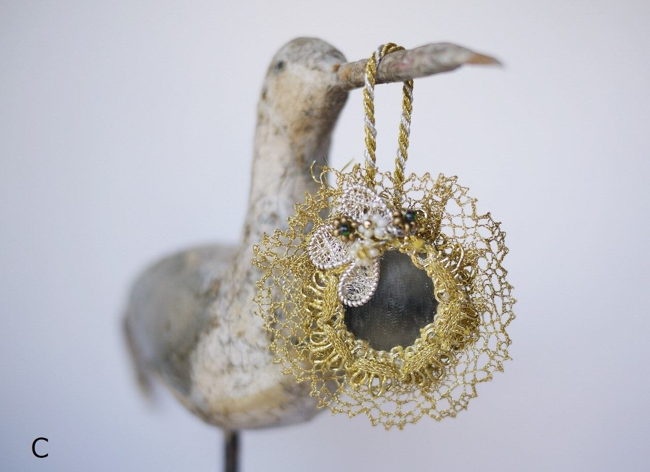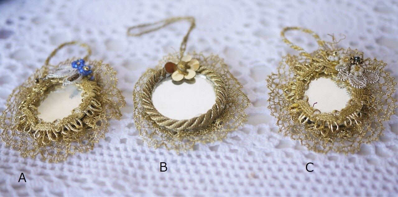 ビンテージのミラー飾りを補修、ドイツ手芸ワイヤーBouillonで飾りました。