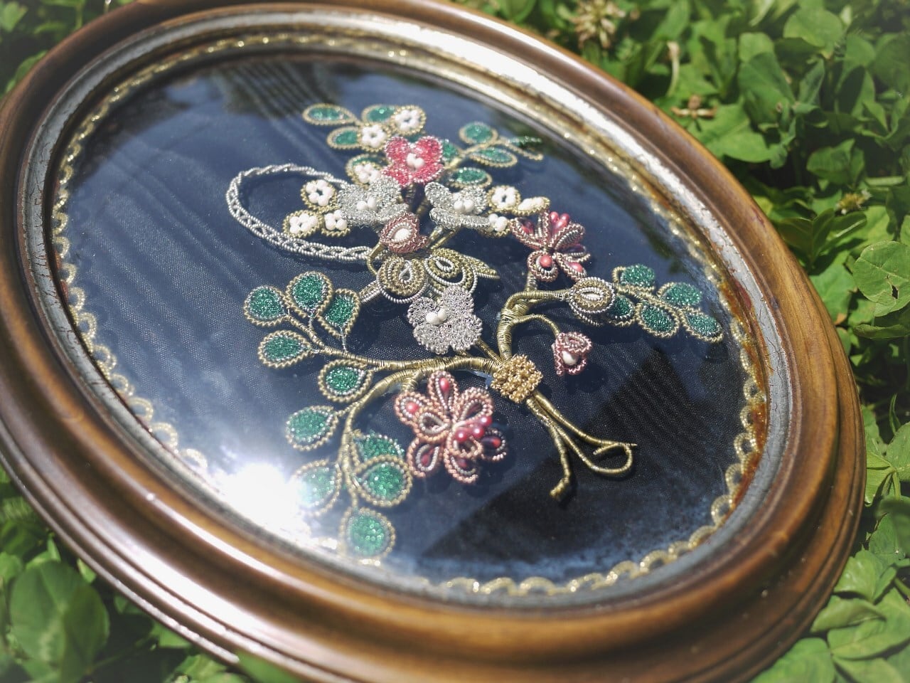 ボタニカルアートワイヤーの額装 ヴィンテージドイツ伝統工芸