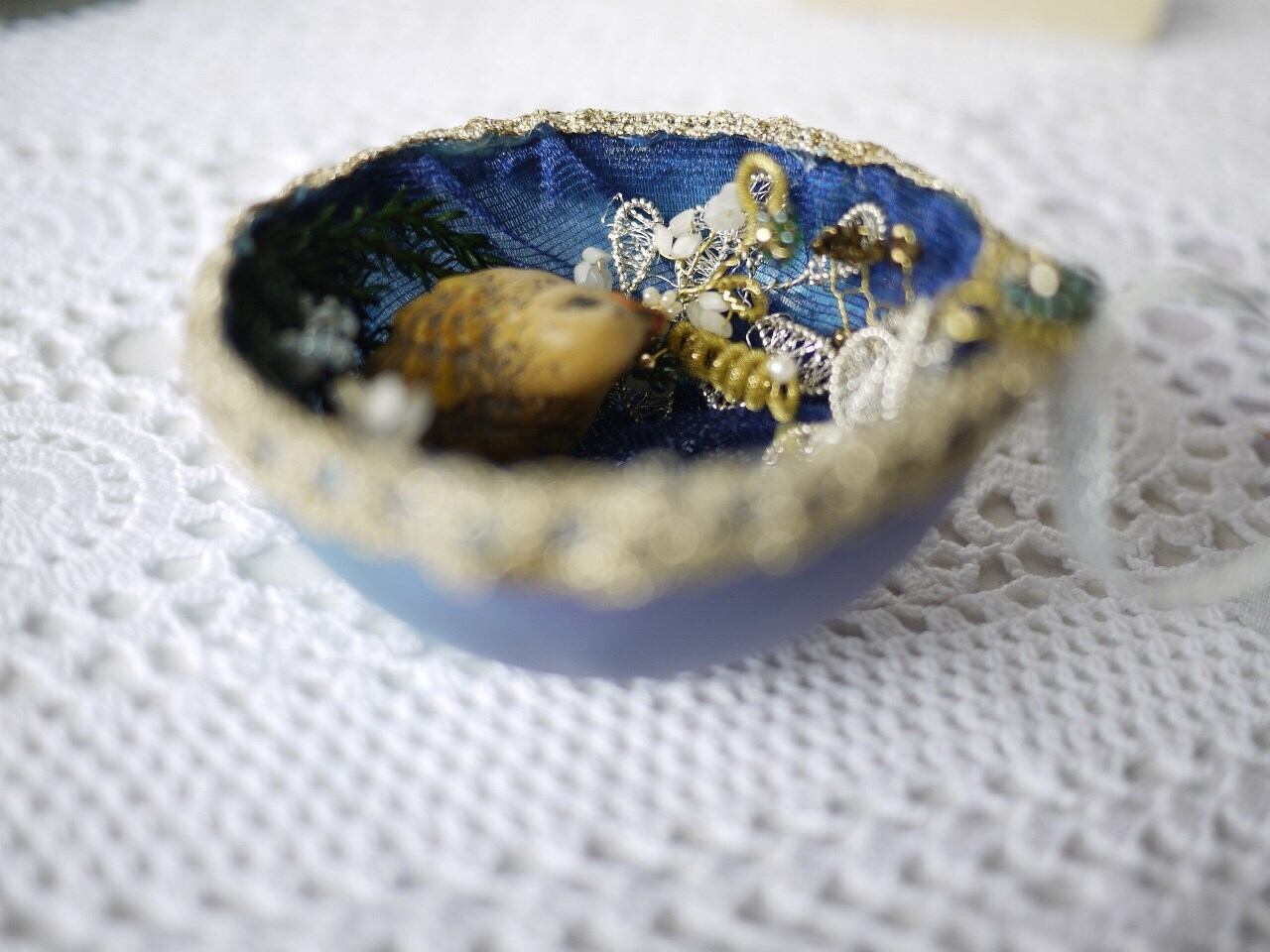小鳥のオーナメント 群青色クーゲル ドイツ