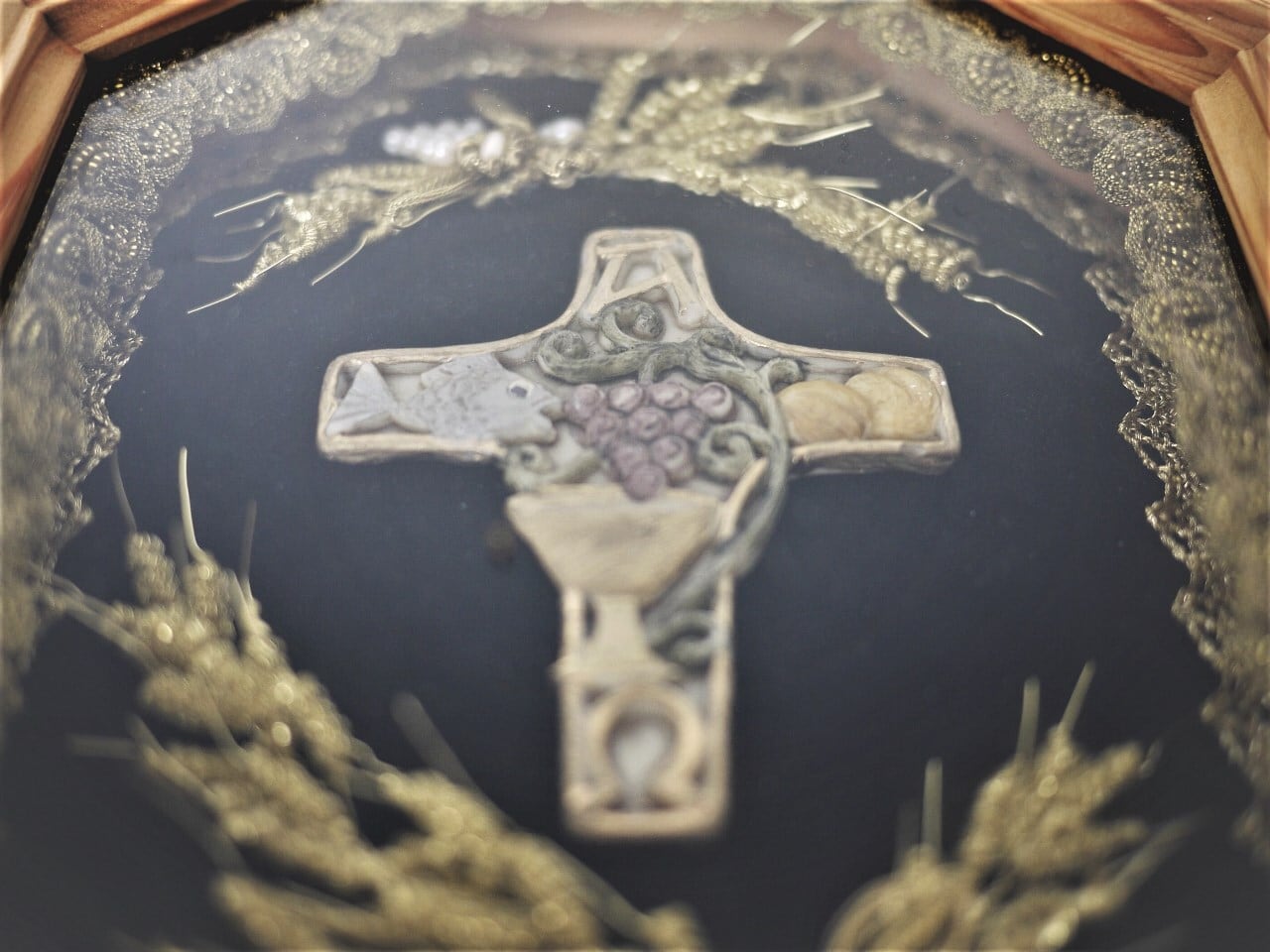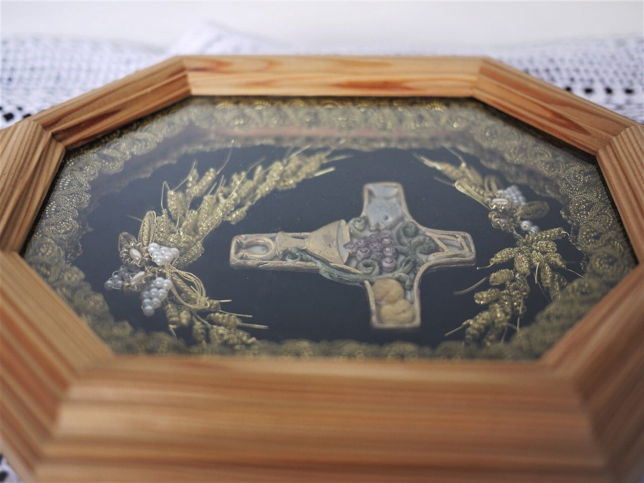 ドイツの古い手芸で、麦と葡萄の額装を作りました。