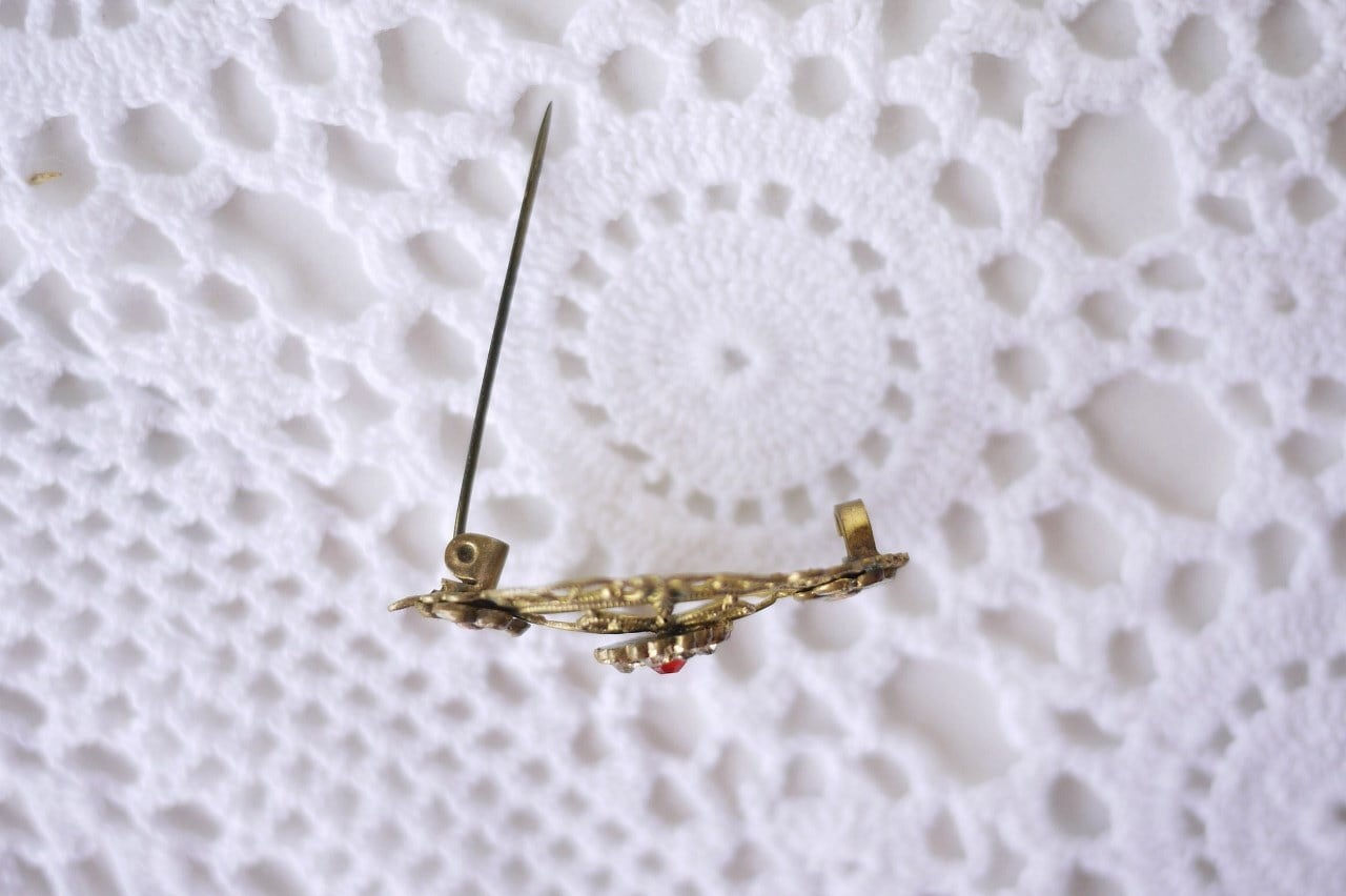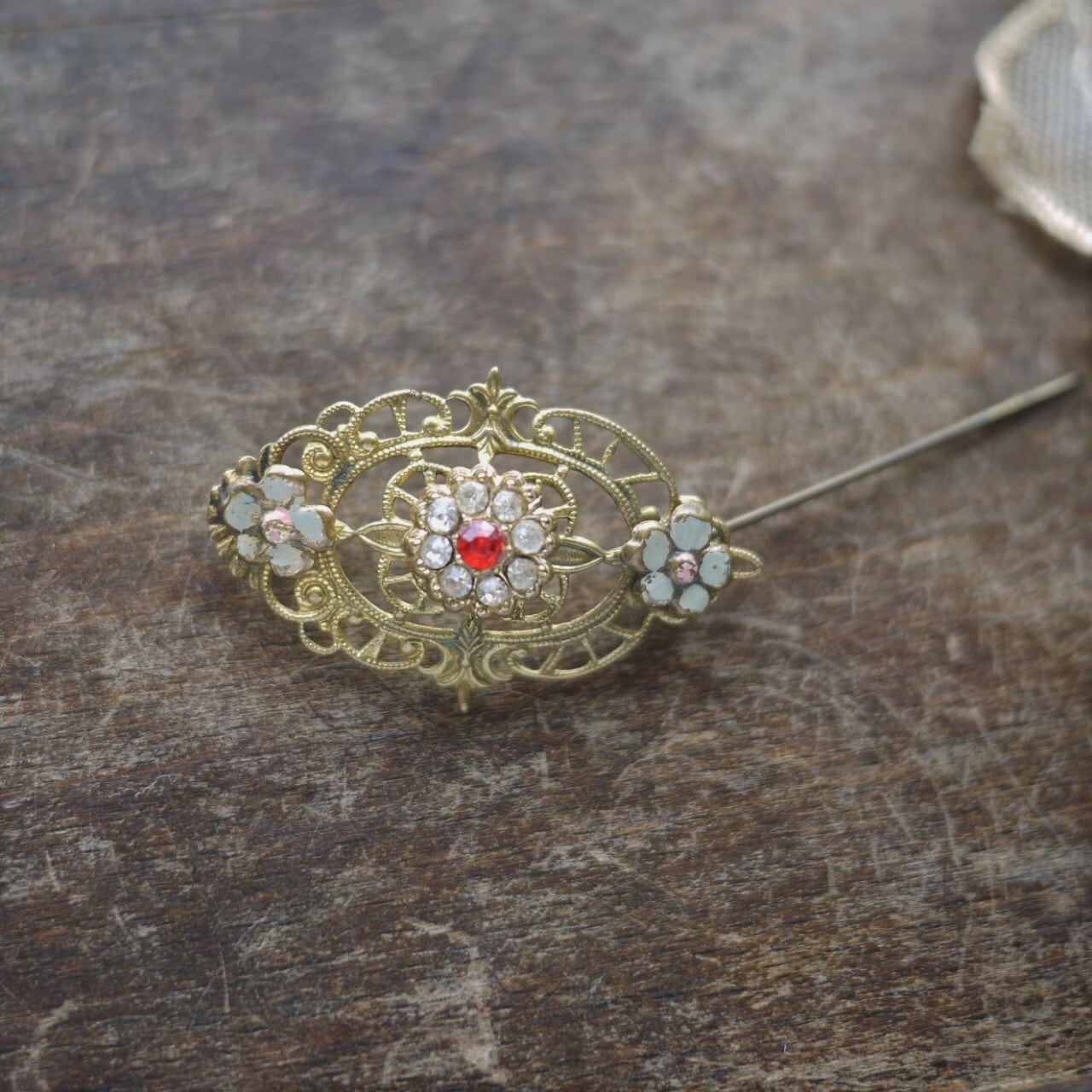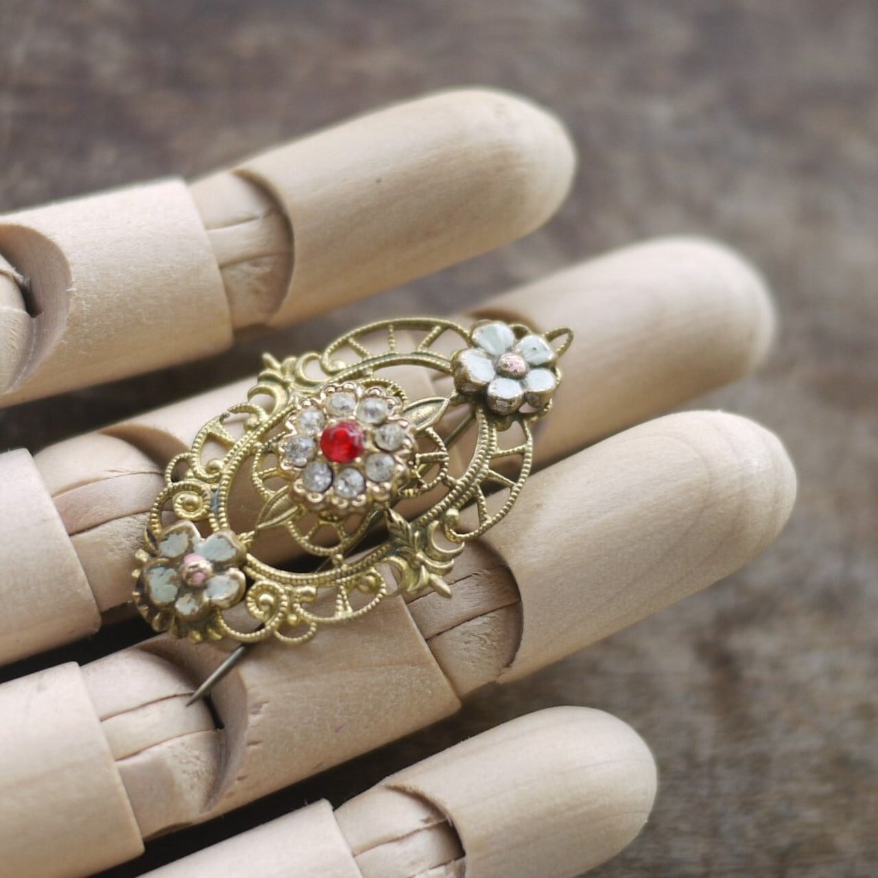 細かなフィリグリーで可愛い花を3つそろえたブローチ。