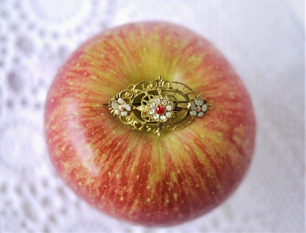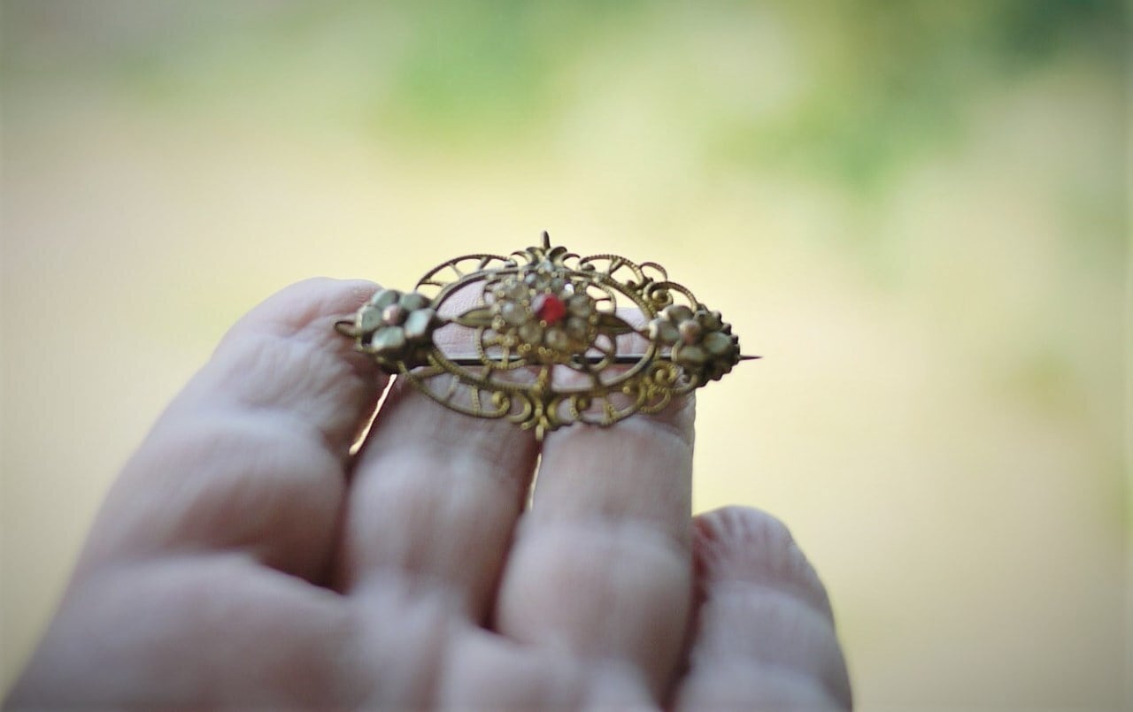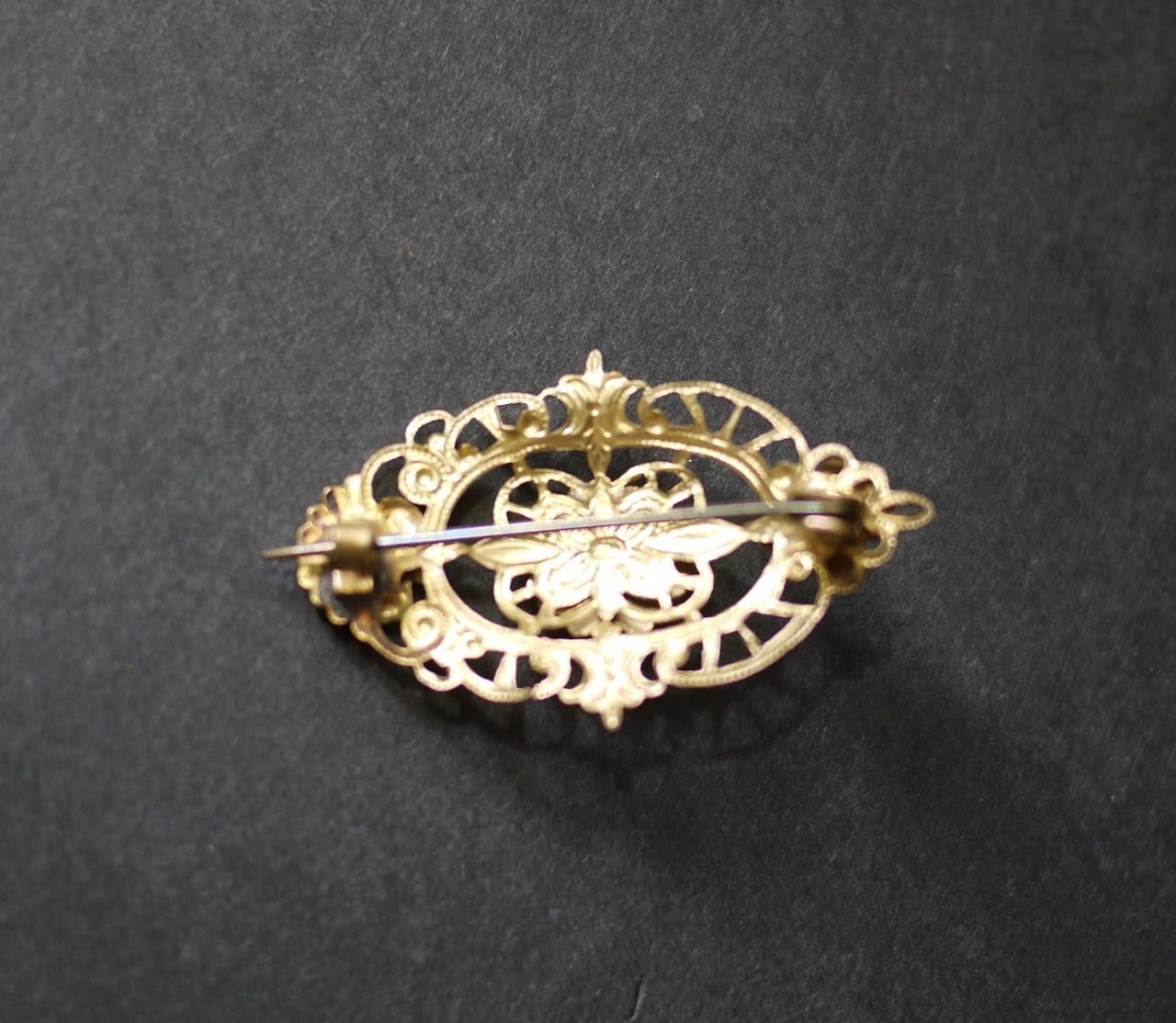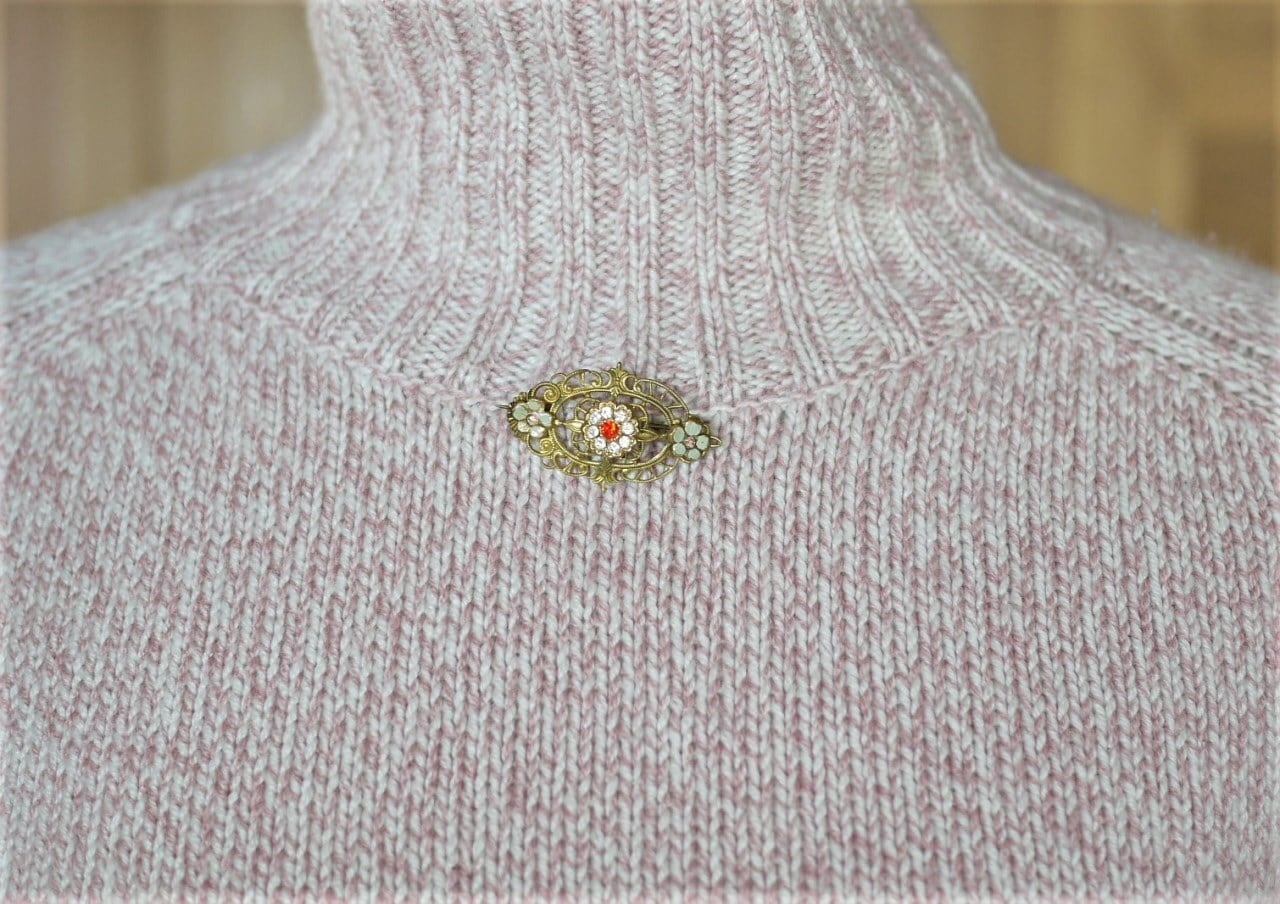 細かなフィリグリーで可愛い花を3つそろえたブローチ。