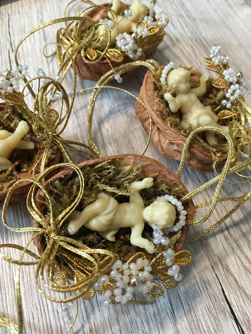 胡桃の殻に宗教モチーフを入れる飾りは、