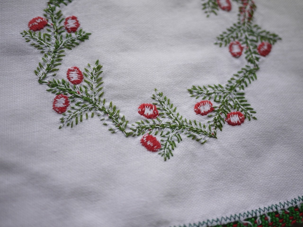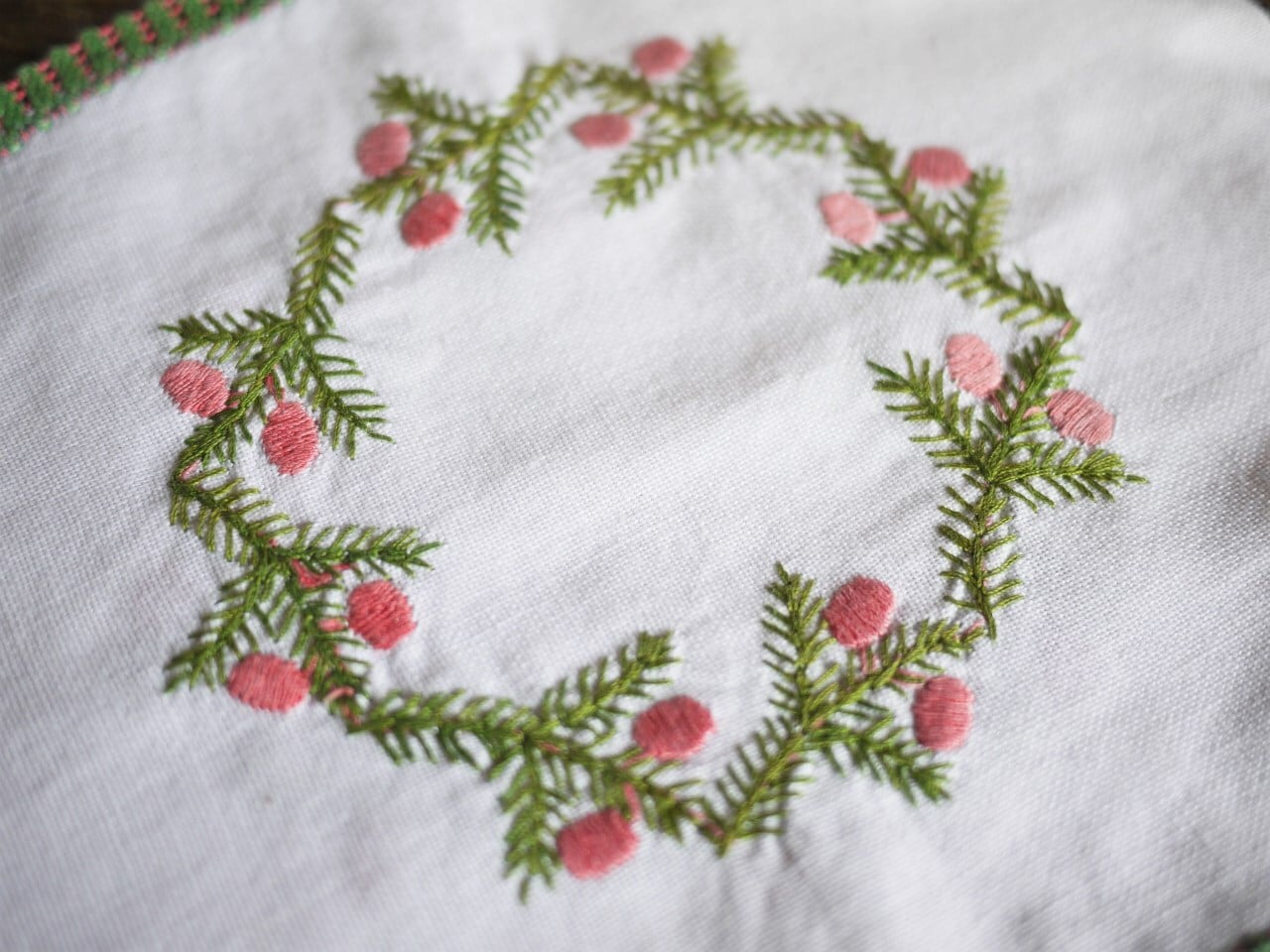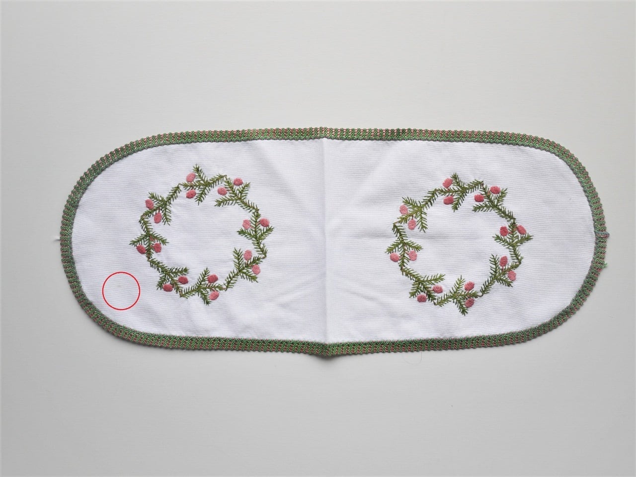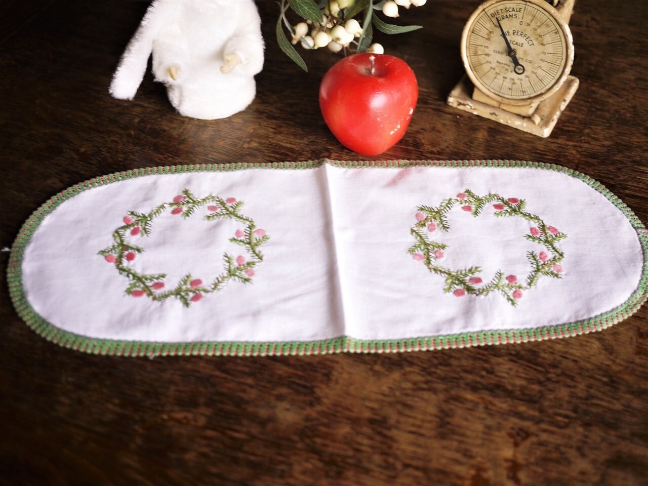 赤い実の楕円マット もみの木刺繍 ドイツ
