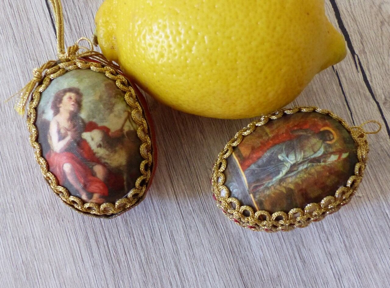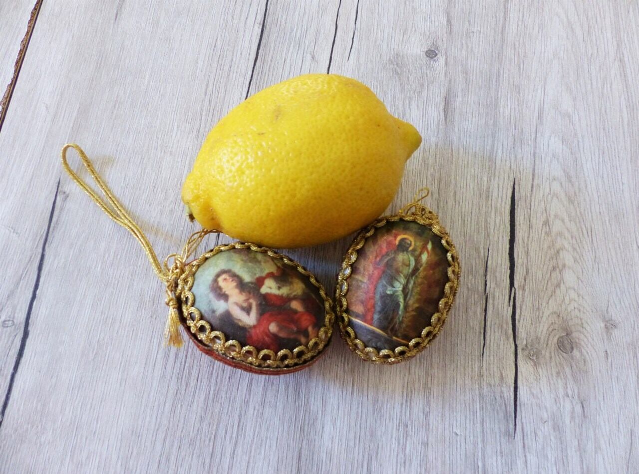 卵のオーナメント2P シルクプリント 聖人イエス