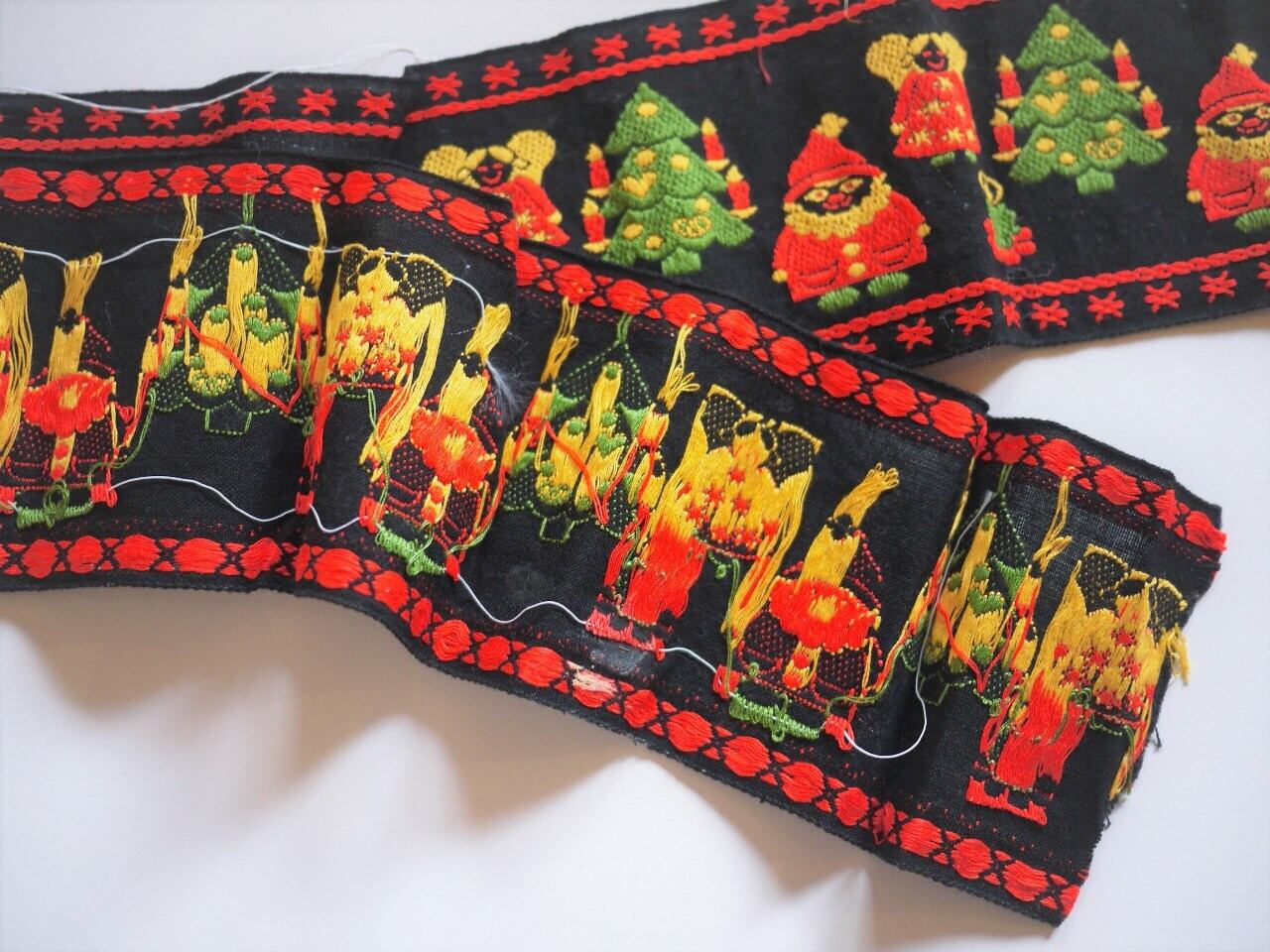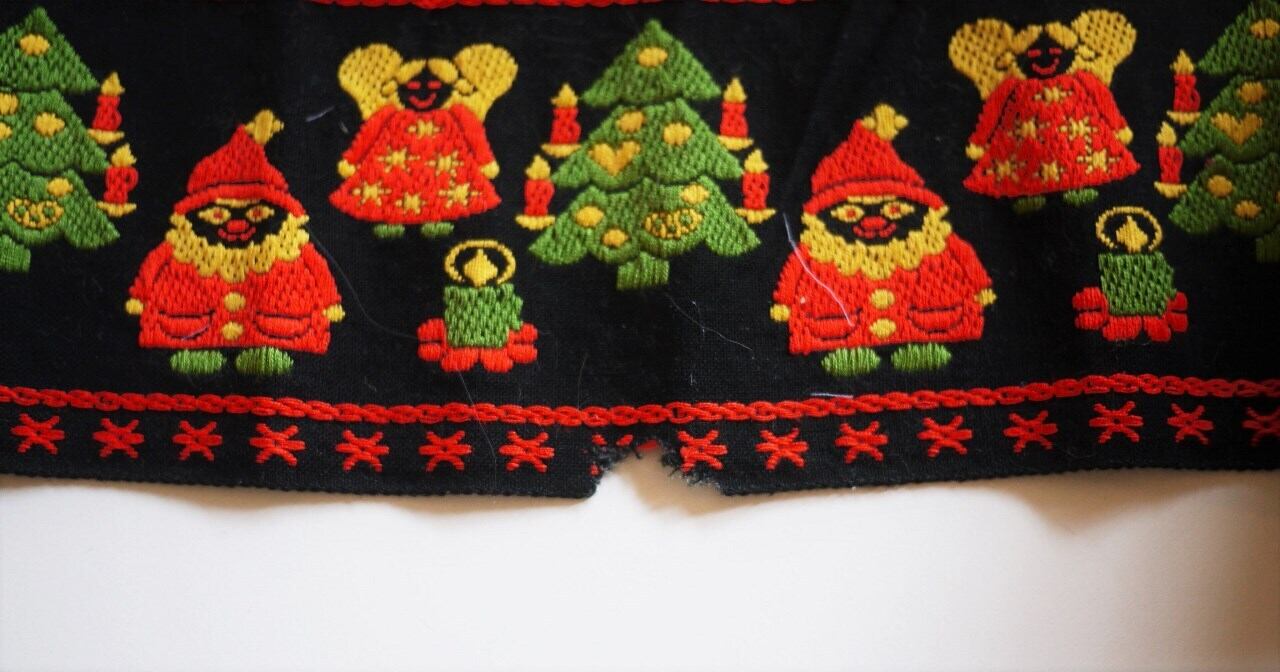 天使、キャンドルなどが発色の良い糸で刺繍されています。