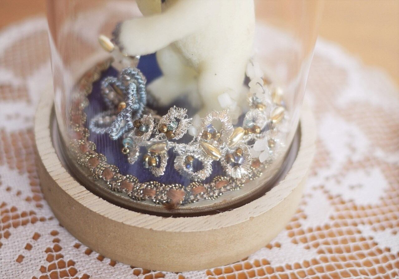 天鵞絨を敷き、ブロードを縁飾りをしました。