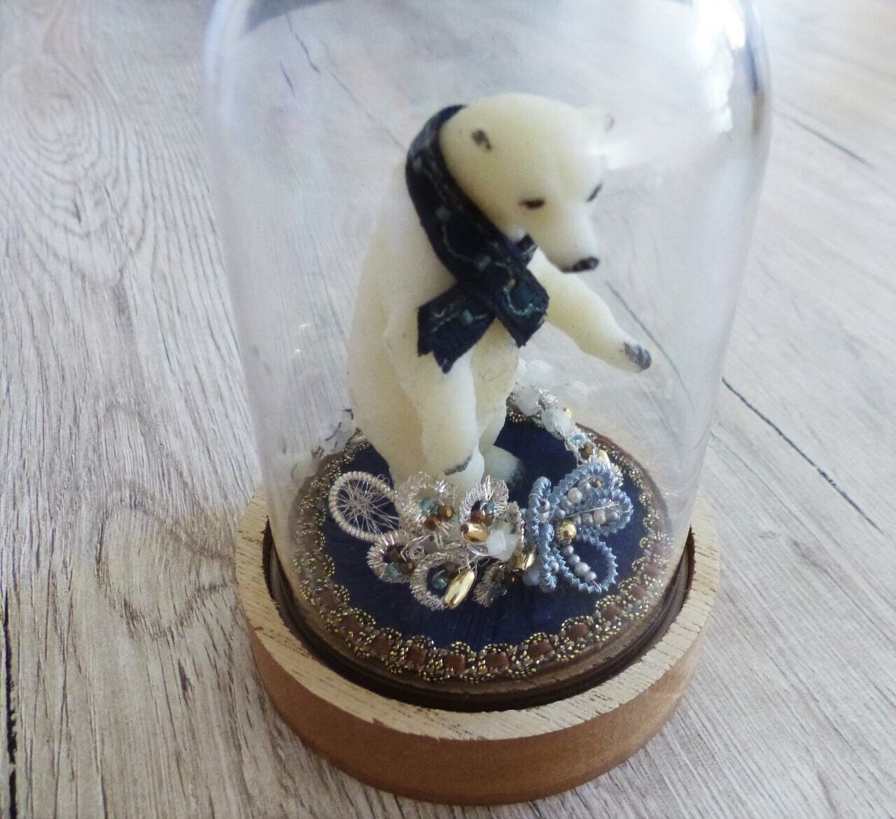 銀色と水色のBouillonワイヤーで冷たい色合いに。