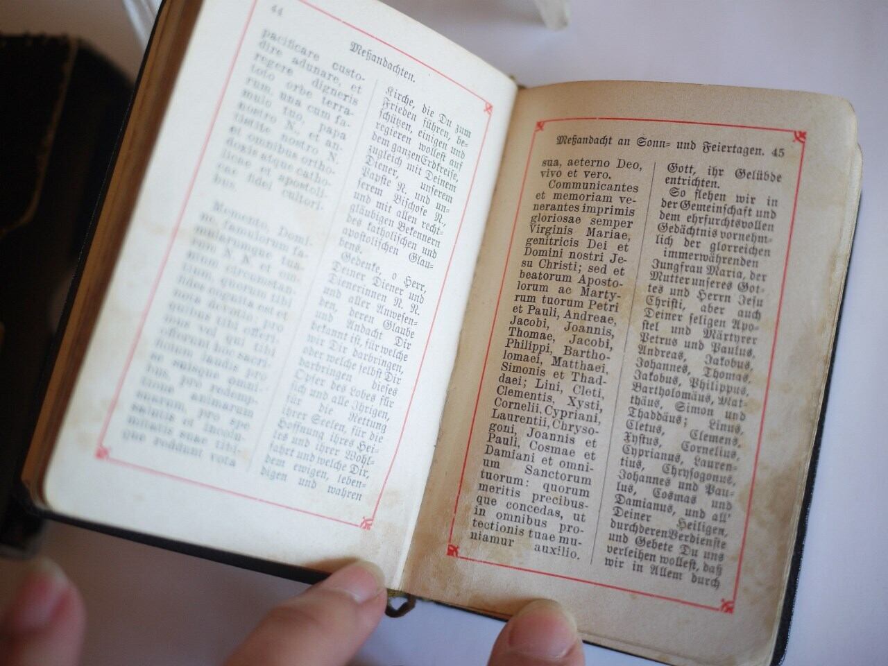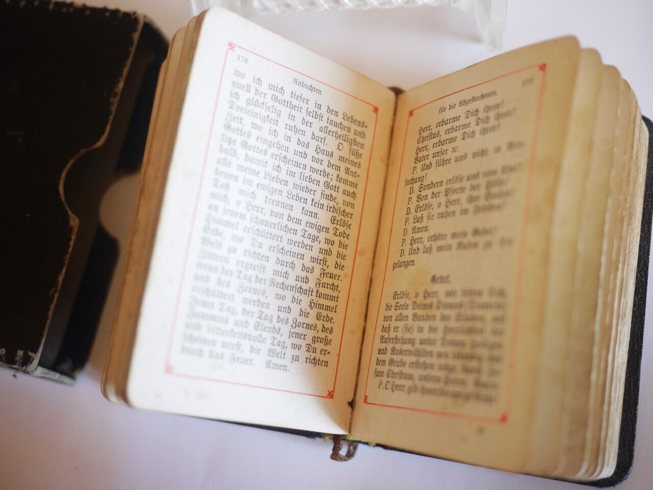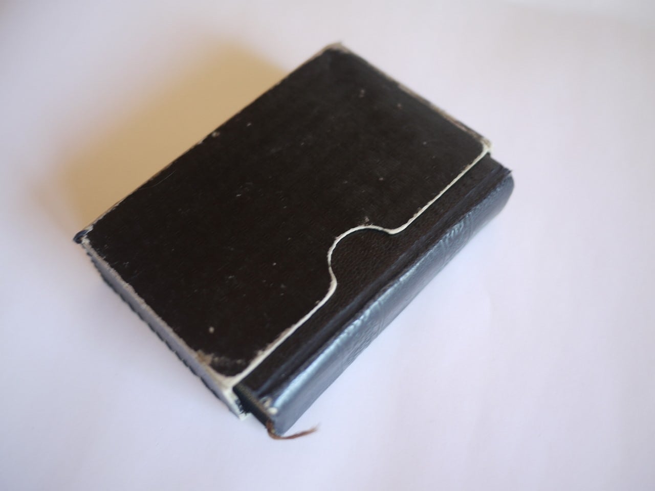 古い革製の祈祷書、型押しの紙箱入りです。