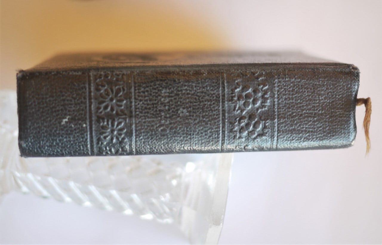 表紙にイエス像、背部分は花やブドウの型押しがされています。
