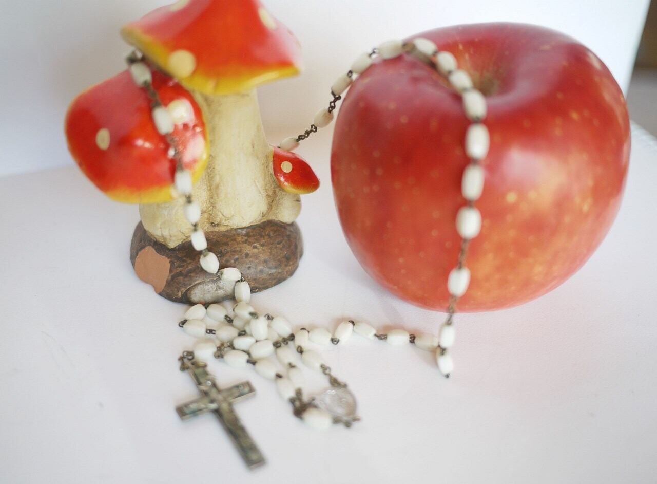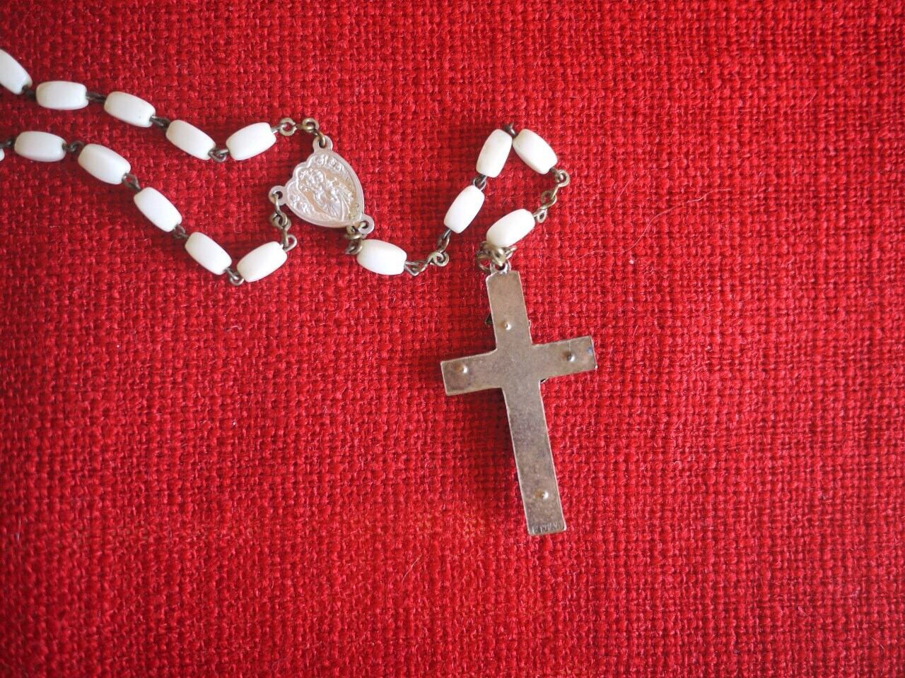 マットな白い角柱ガラスビーズでつないだロザリオ。
