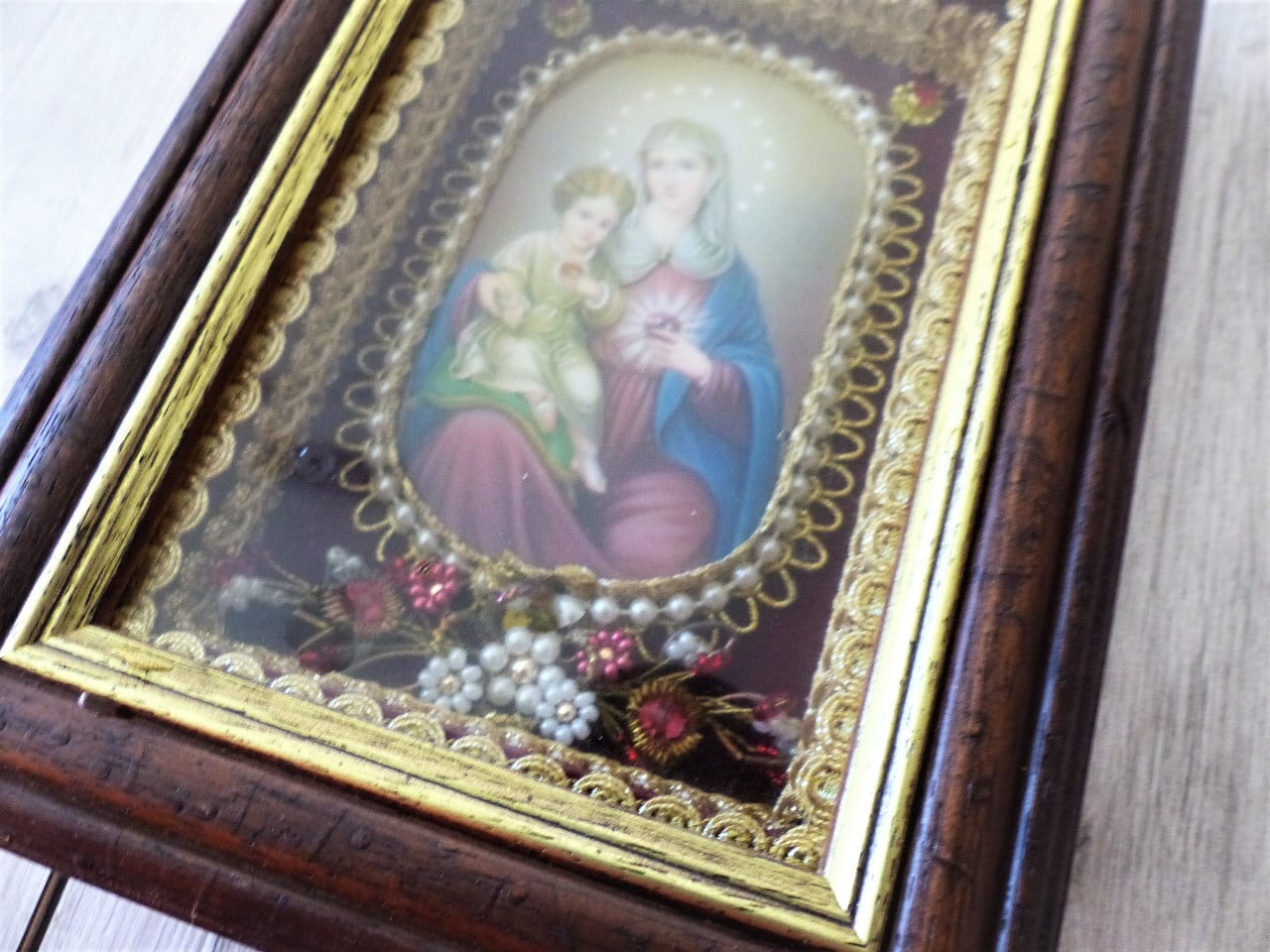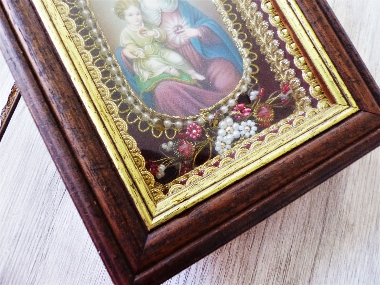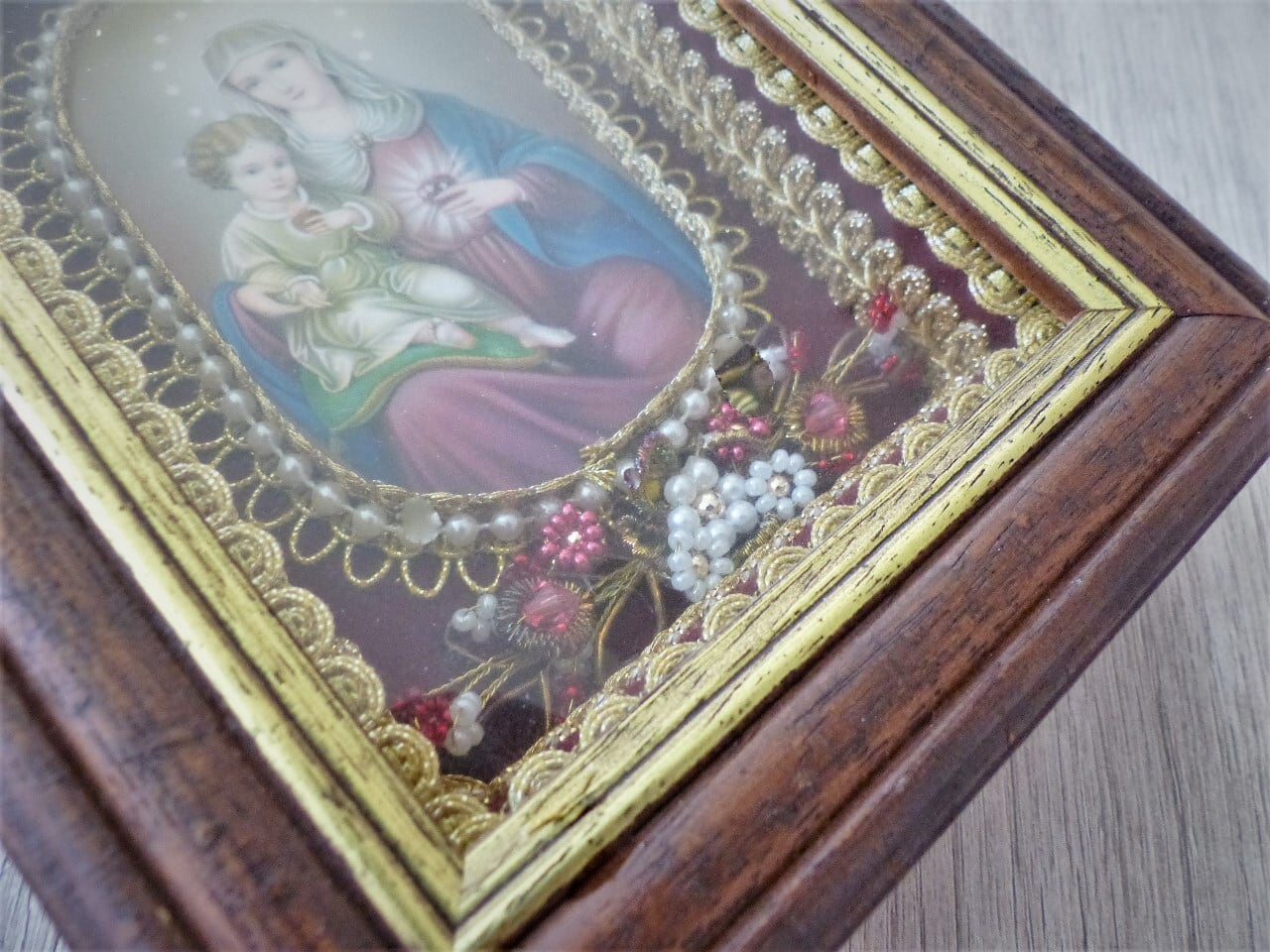 ドイツの修道院の手工芸、Klosterarbeitenの額装です。