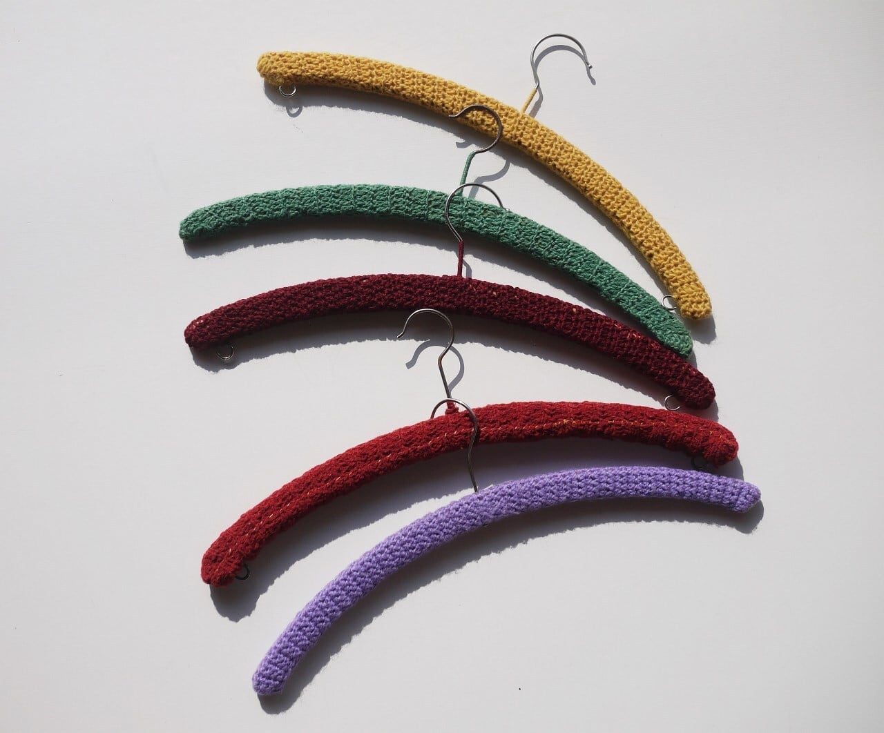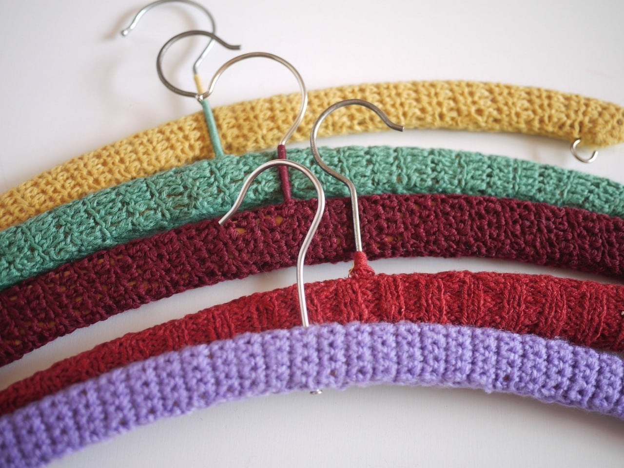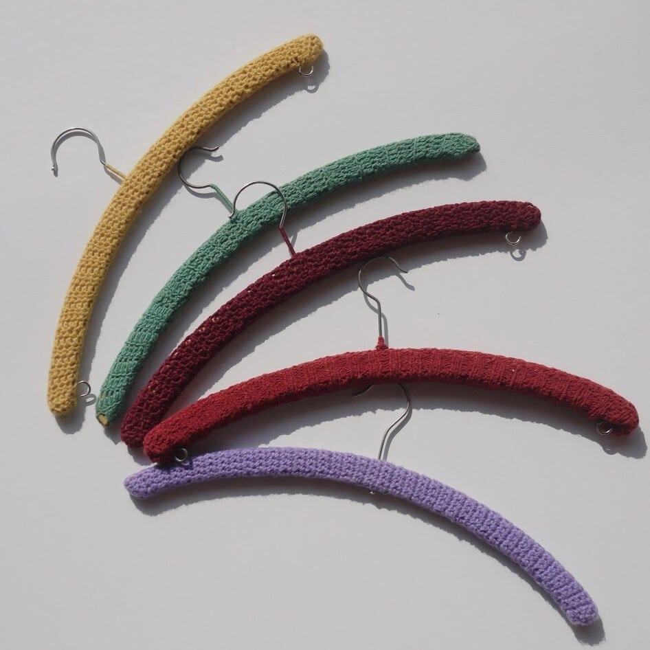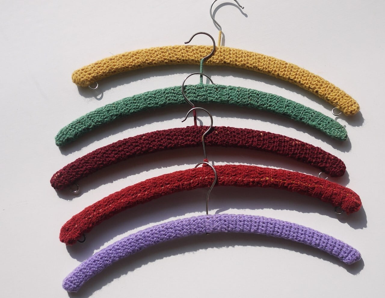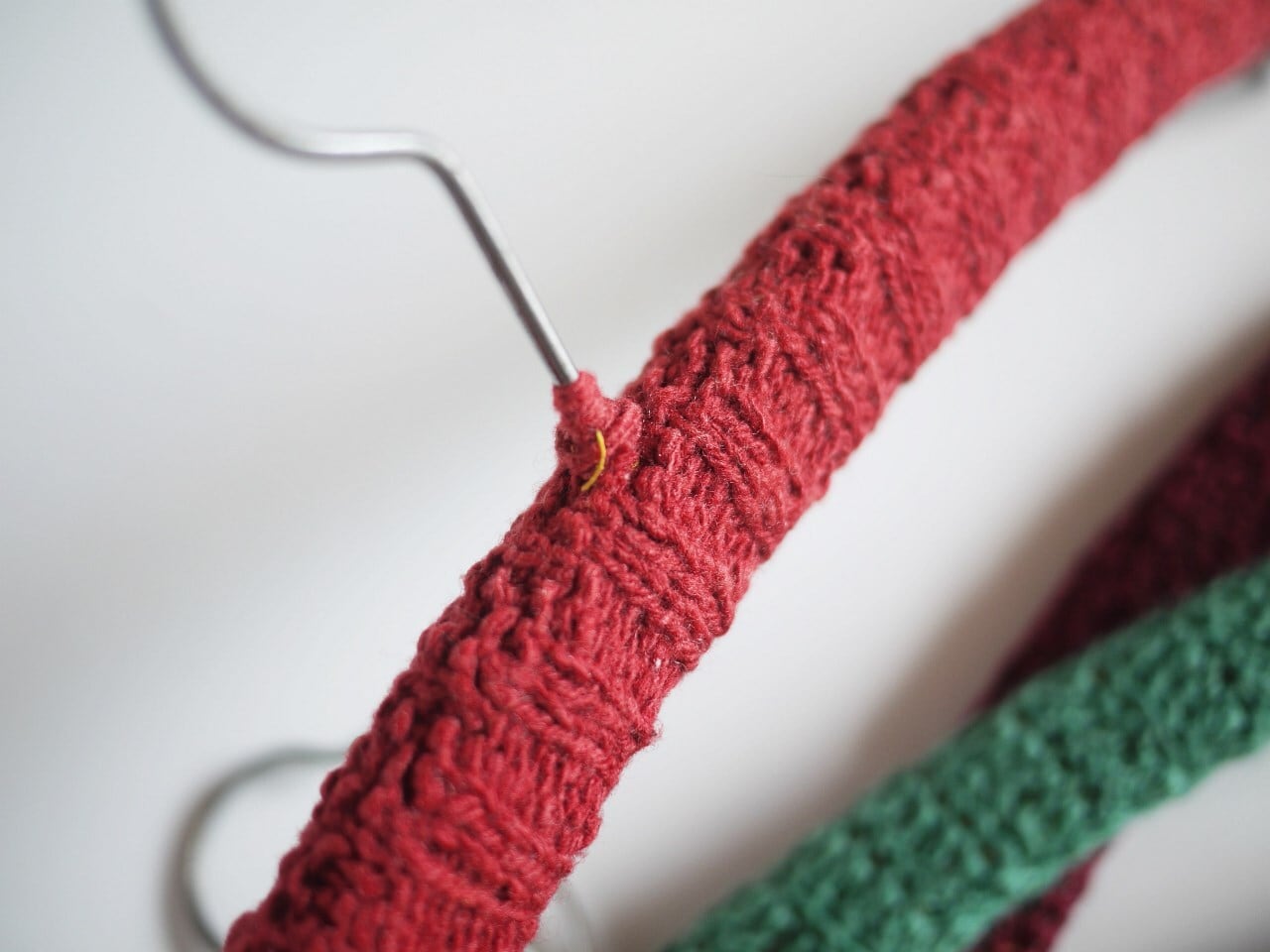 手編み毛糸でカバーされたノスタルジックなハンガー。