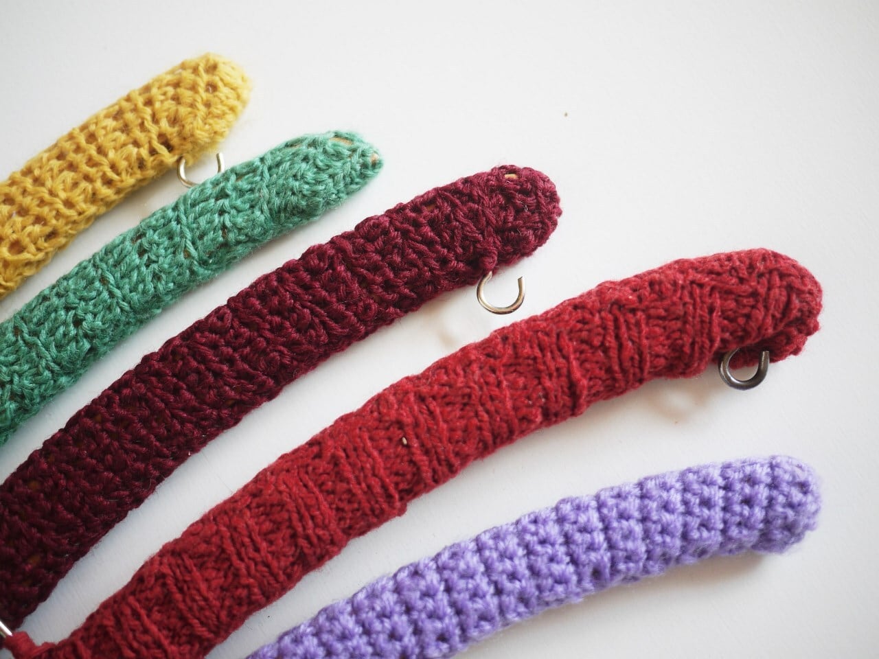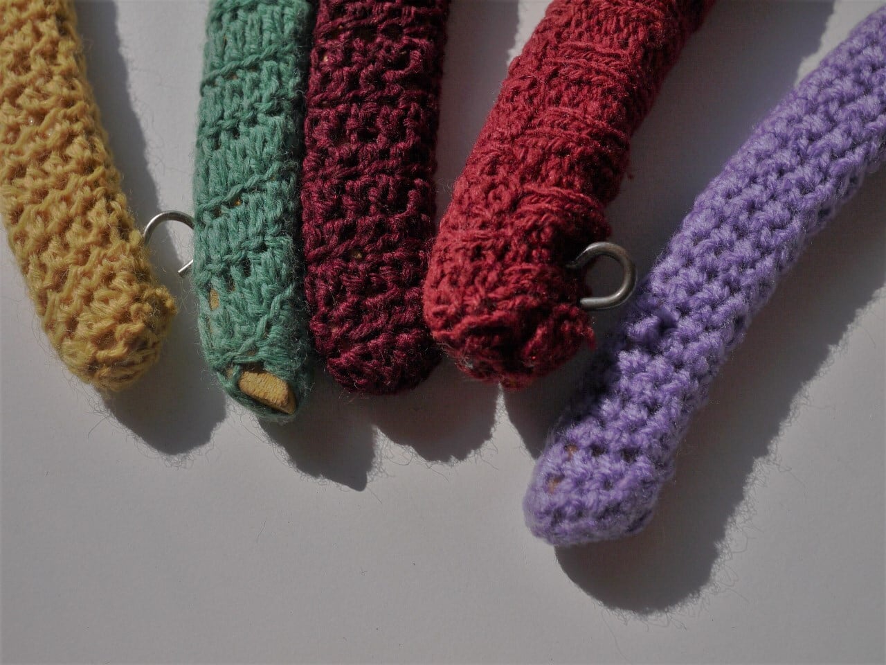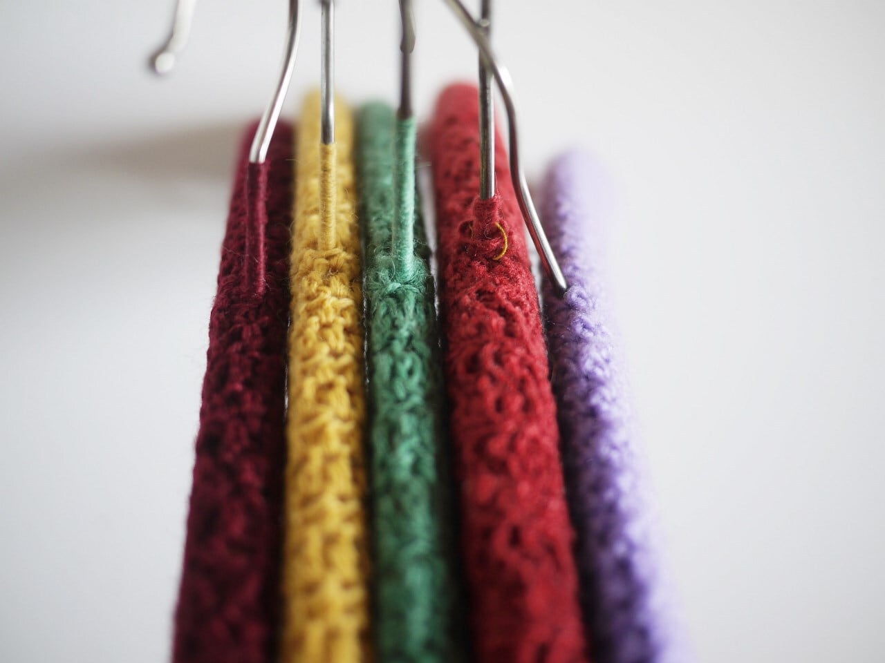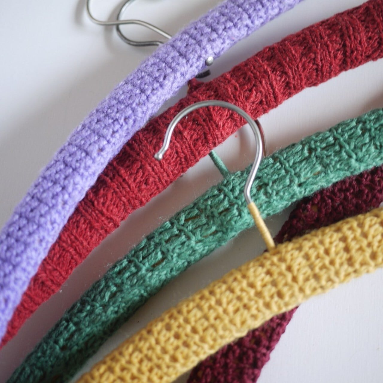 手編み毛糸でカバーされたノスタルジックなハンガー。