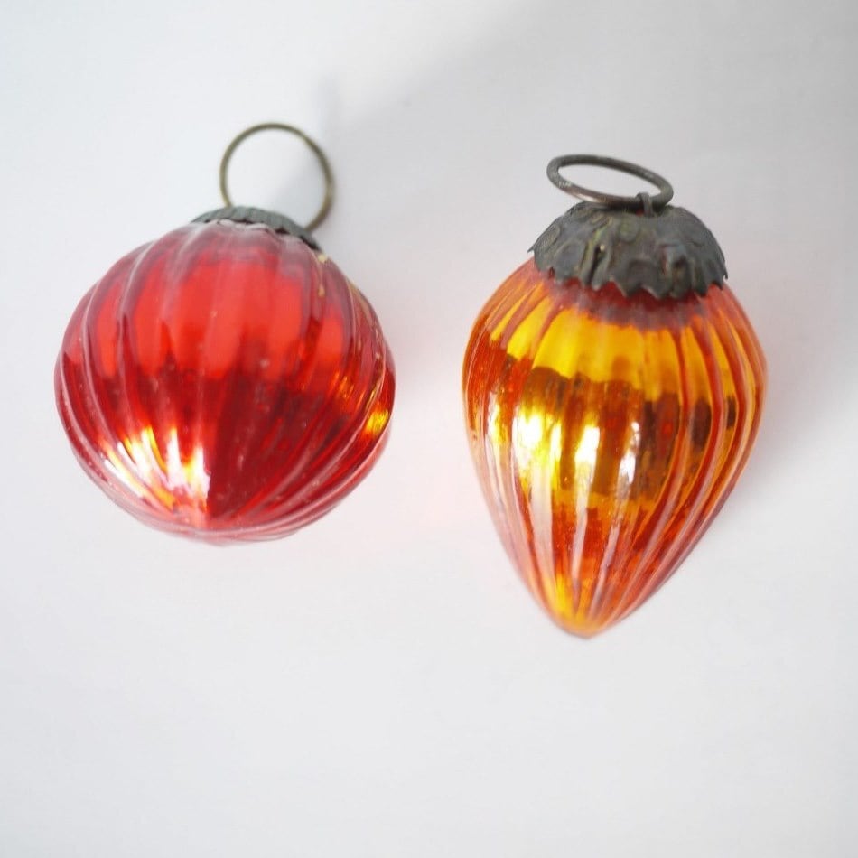 クーゲル玉2個 マーキュリーガラス リブ文様ボーブル