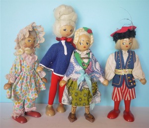 ポーランド ヴィンテージ 木製のお人形 ブルーポンチョ