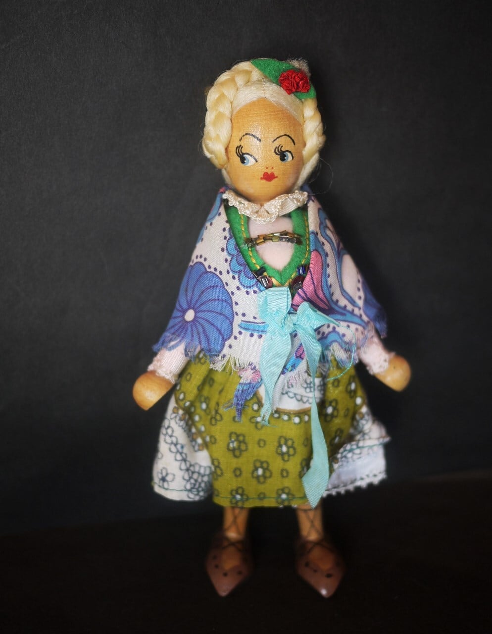 ポーランド ヴィンテージ 木製のお人形 花のストール