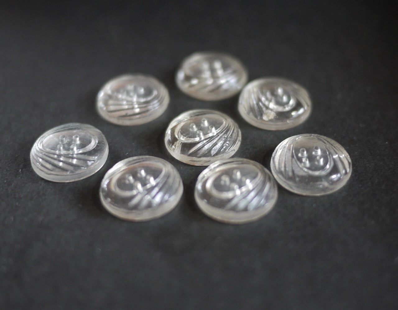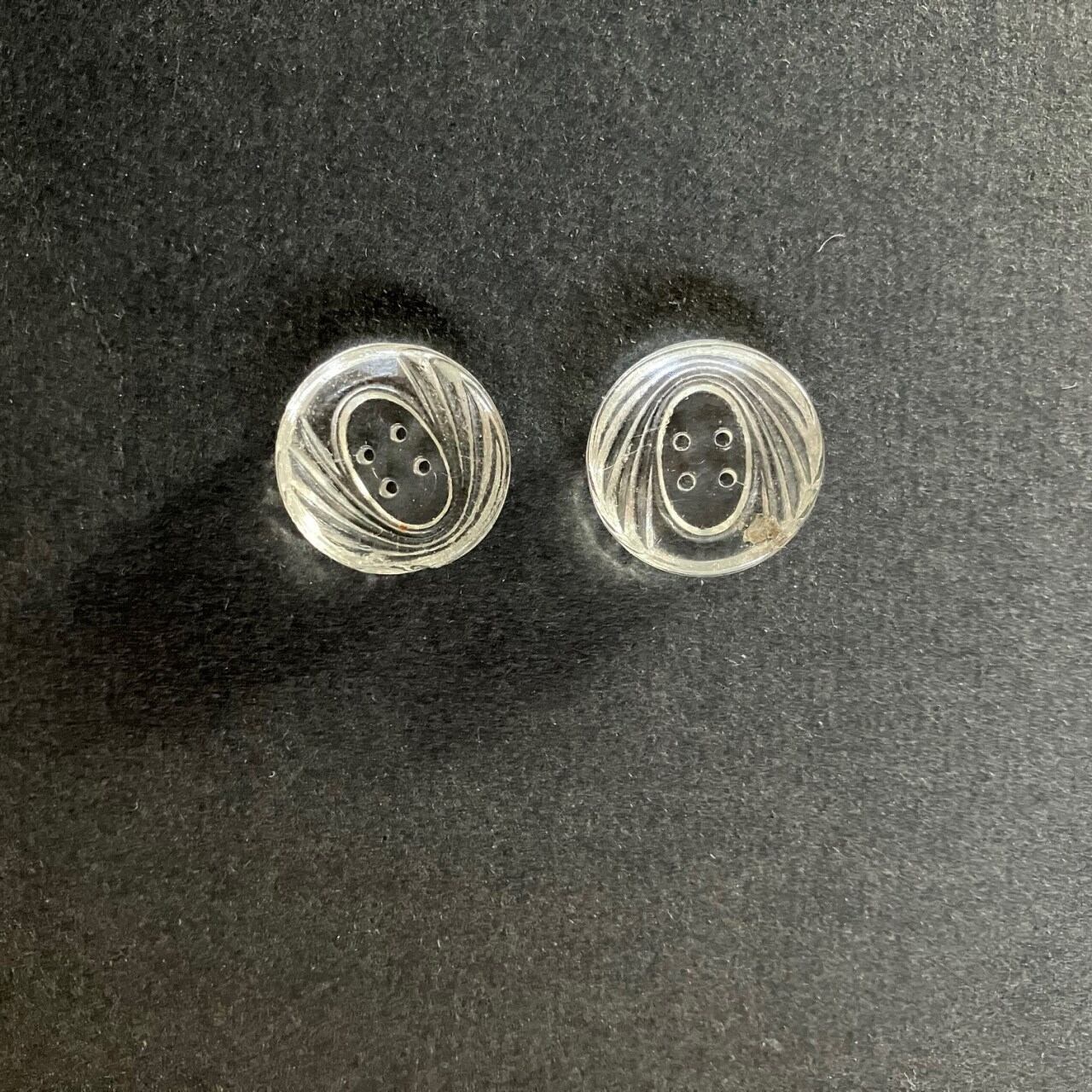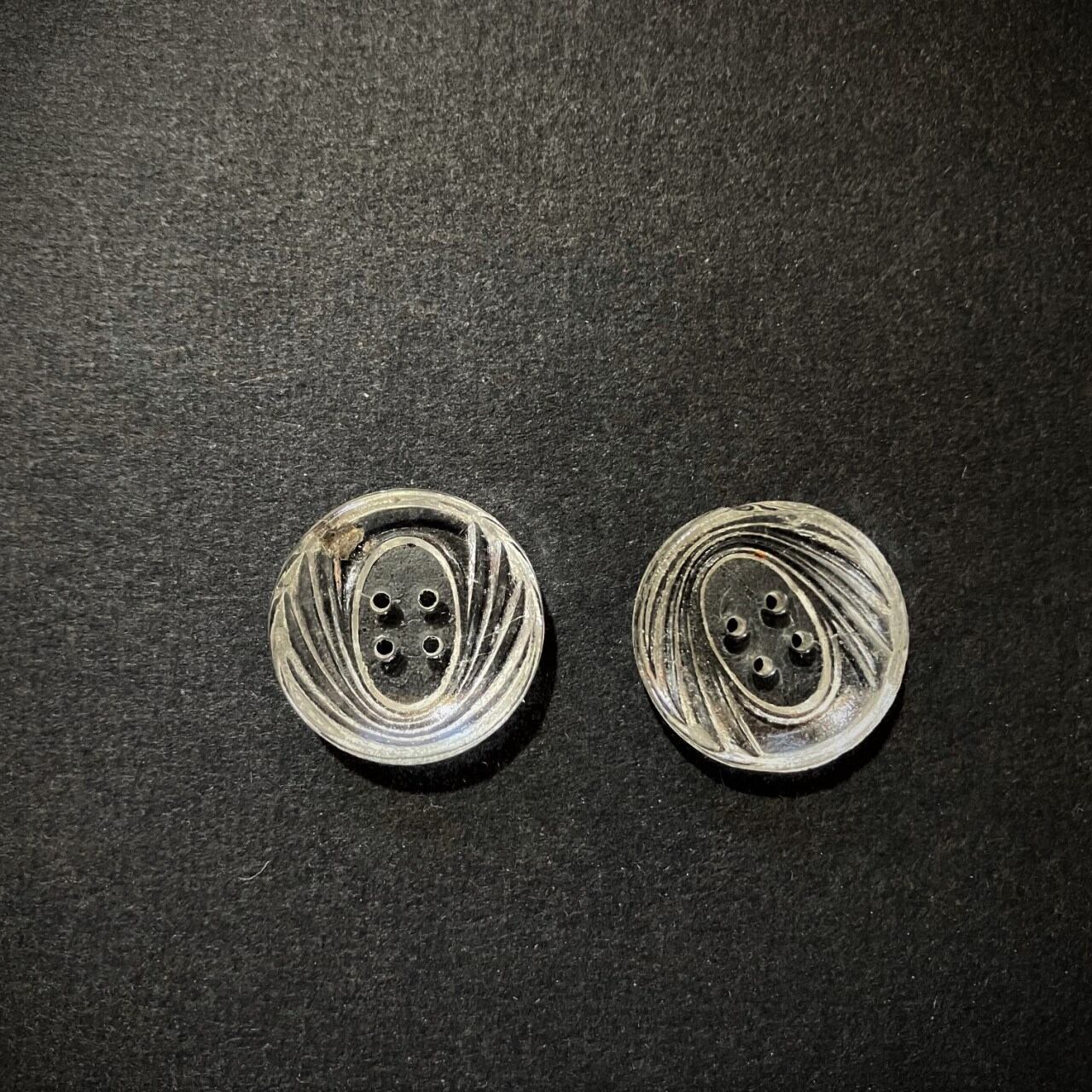 ヴィンテージガラスボタン2P クリア流線j ドイツ