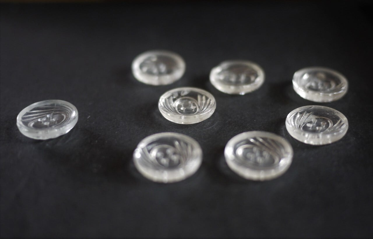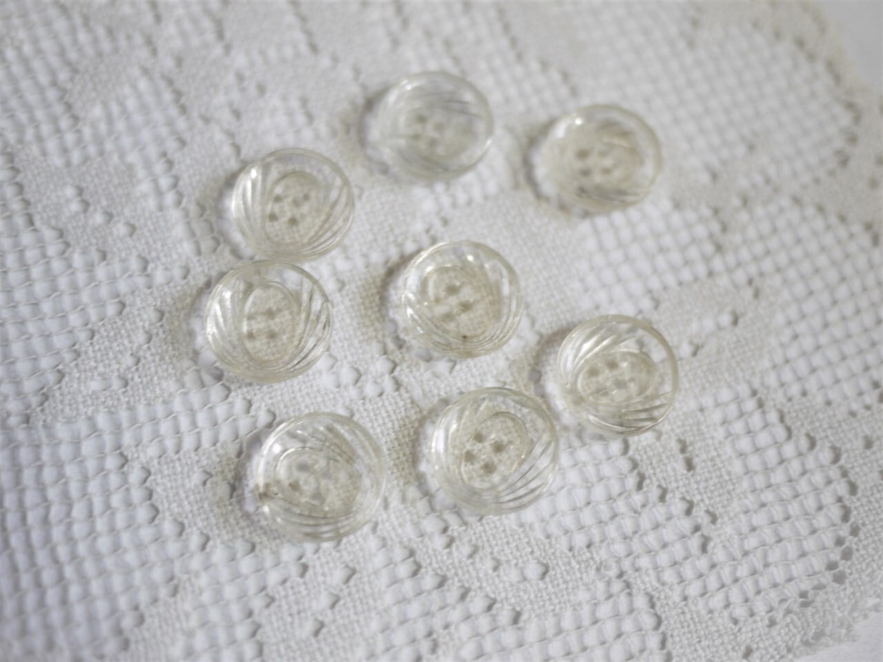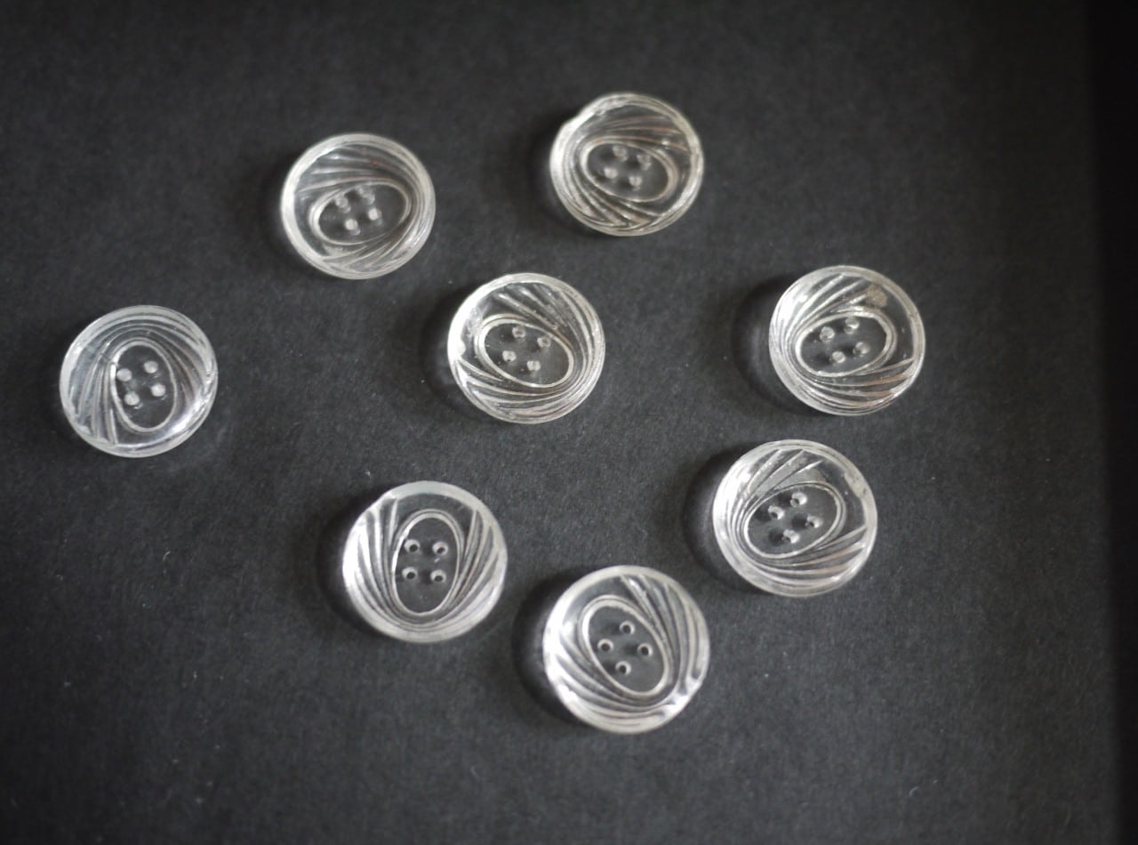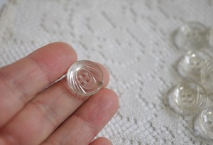 ヴィンテージガラス、四つ穴の透明ガラスボタンです。
