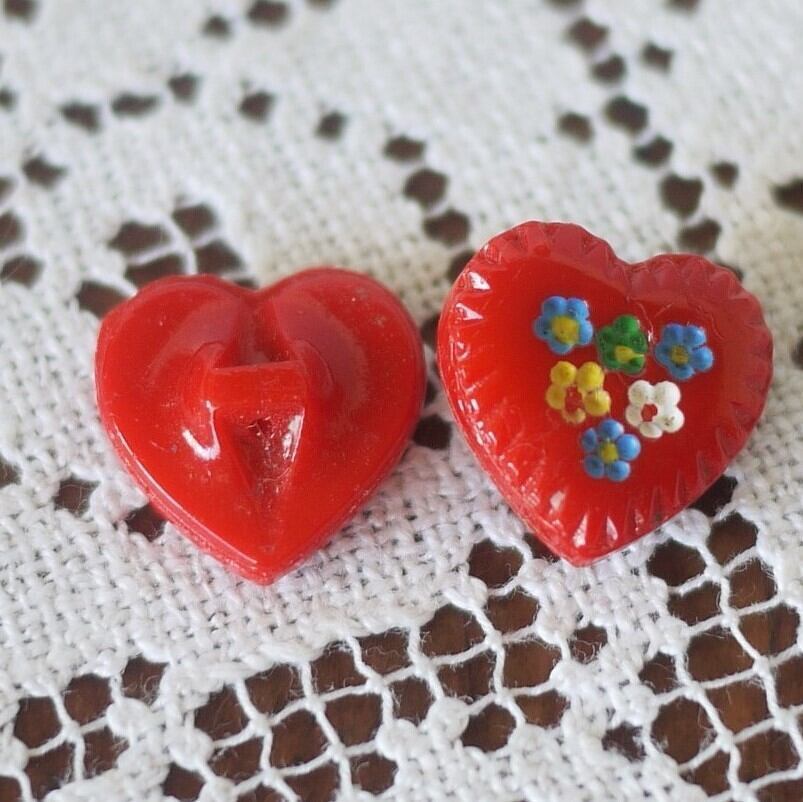 赤いハート小2P ヴィンテージガラスボタン ドイツ