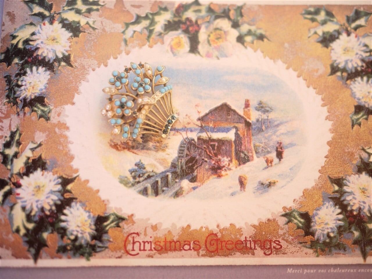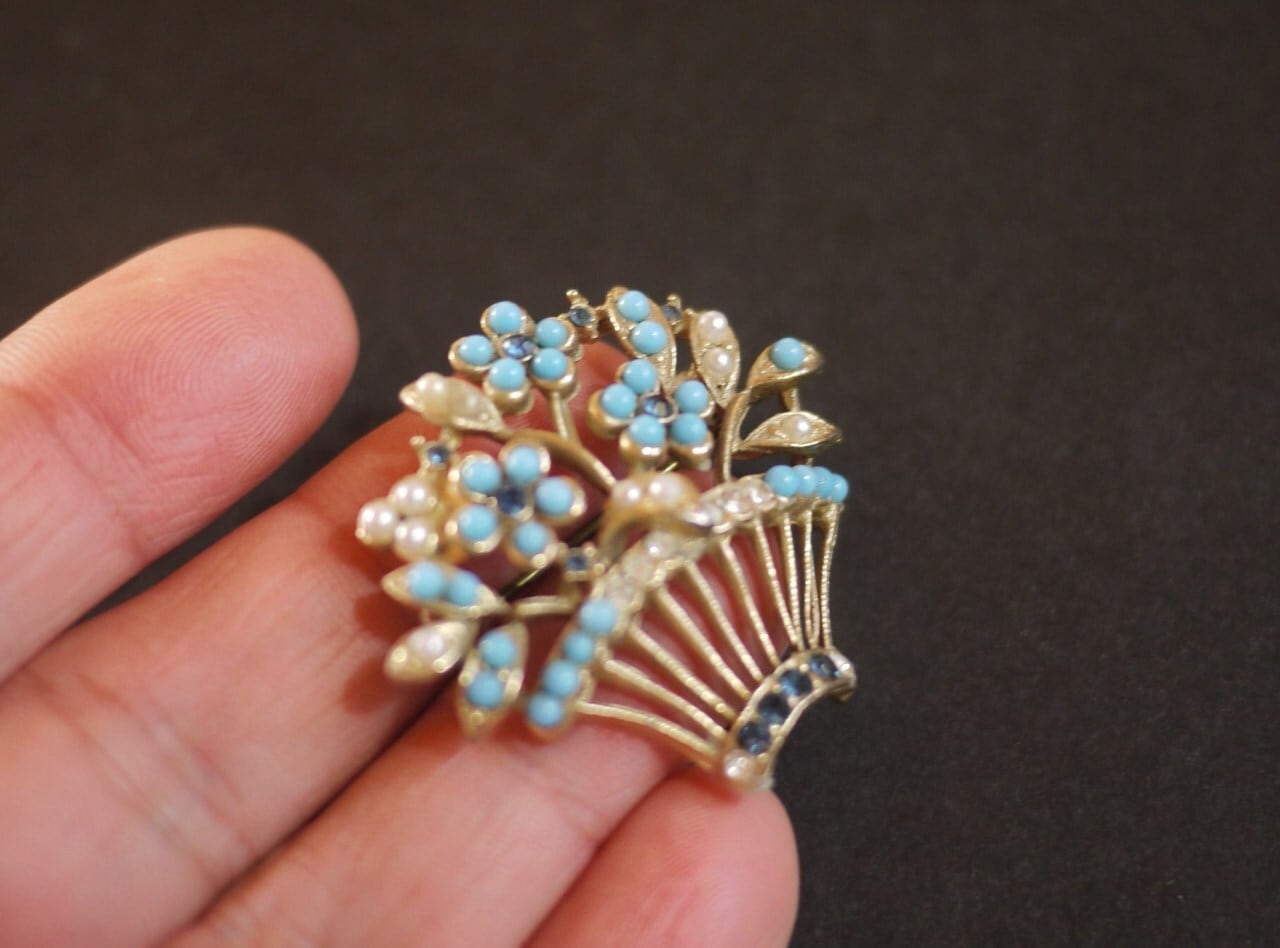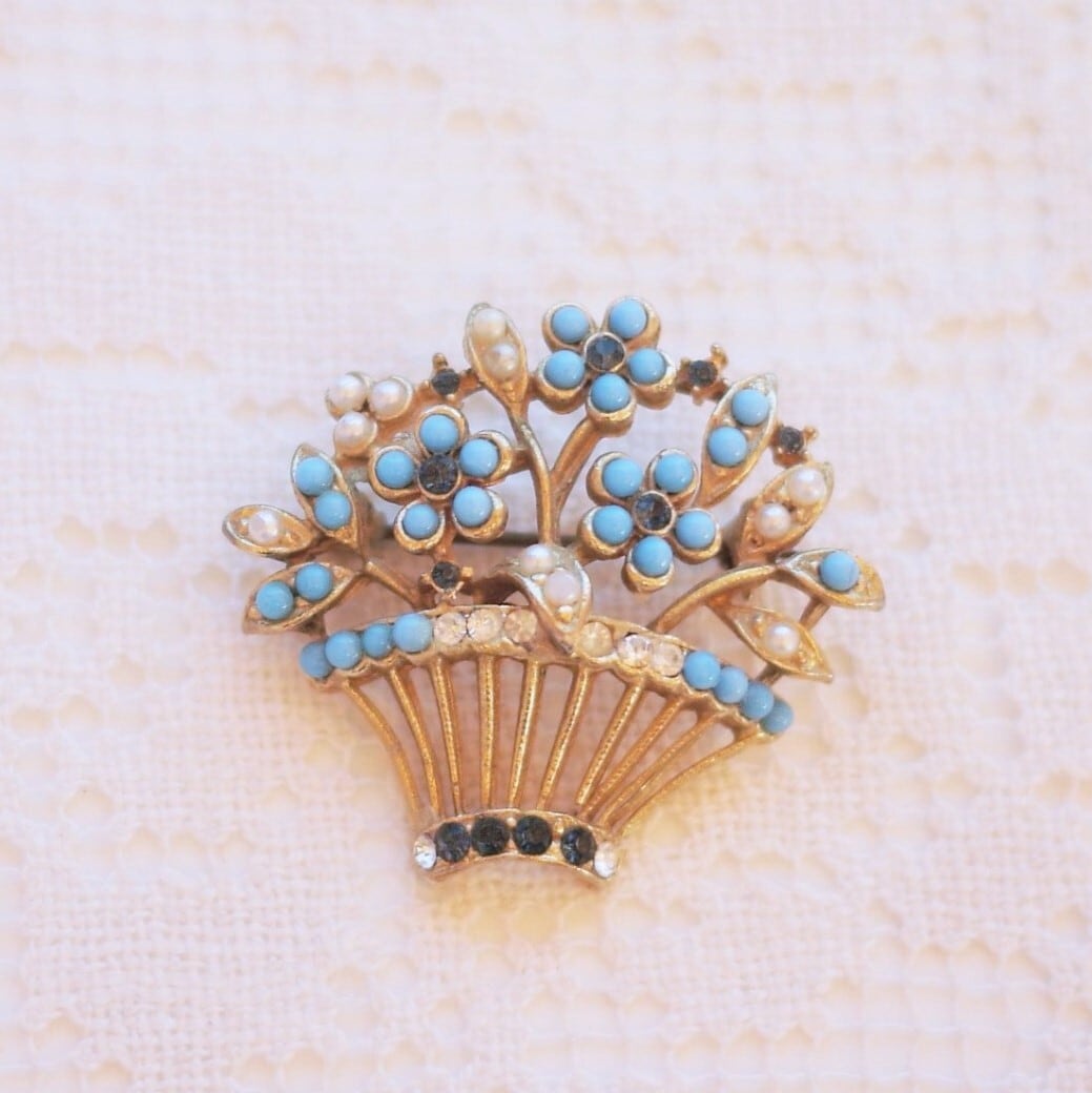可愛いターコイズブルー小花の中心は、青い透明なガラス。
