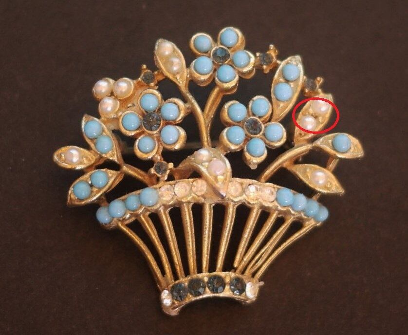 ルーペでみると、パールの間に小さな穴が一つあります。