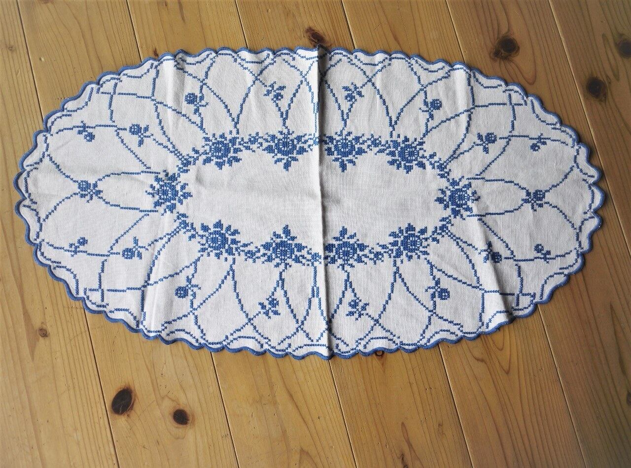 ブルーワーク刺繍 楕円のテーブルランナー ドイツ