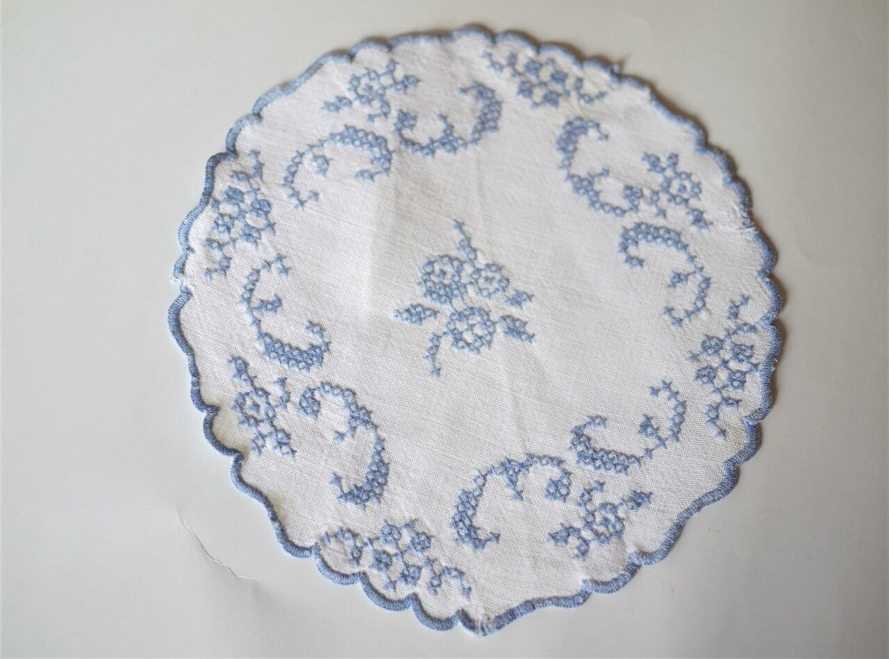 ブルーワーク 一色刺繍のドイリー クロスステッチ