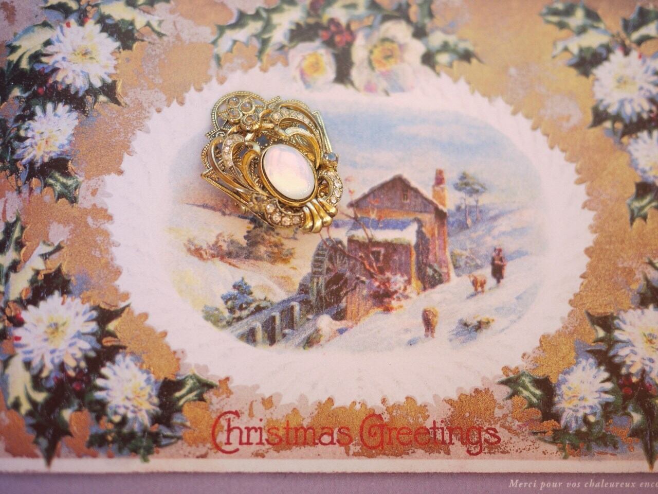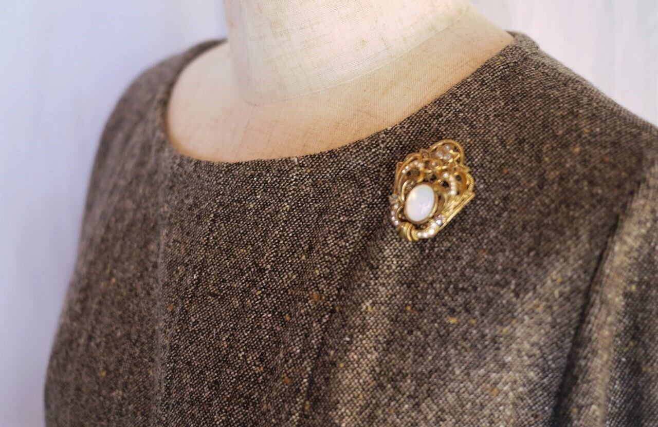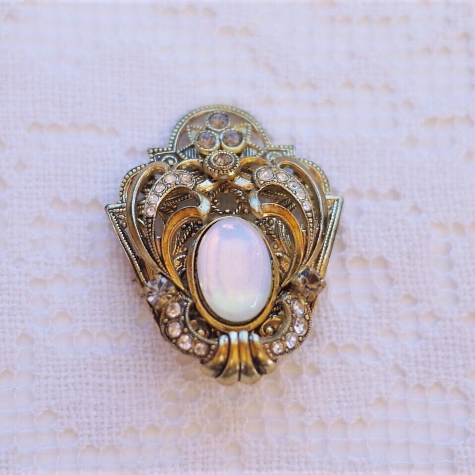 きらめくブローチ 乳白色カボッション