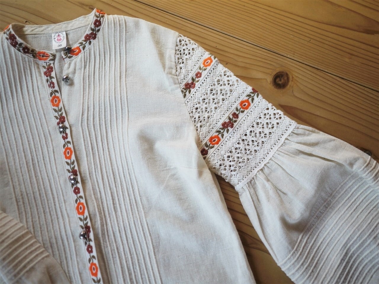 前身ごろと袖にピンタックなど凝ったデザインです。