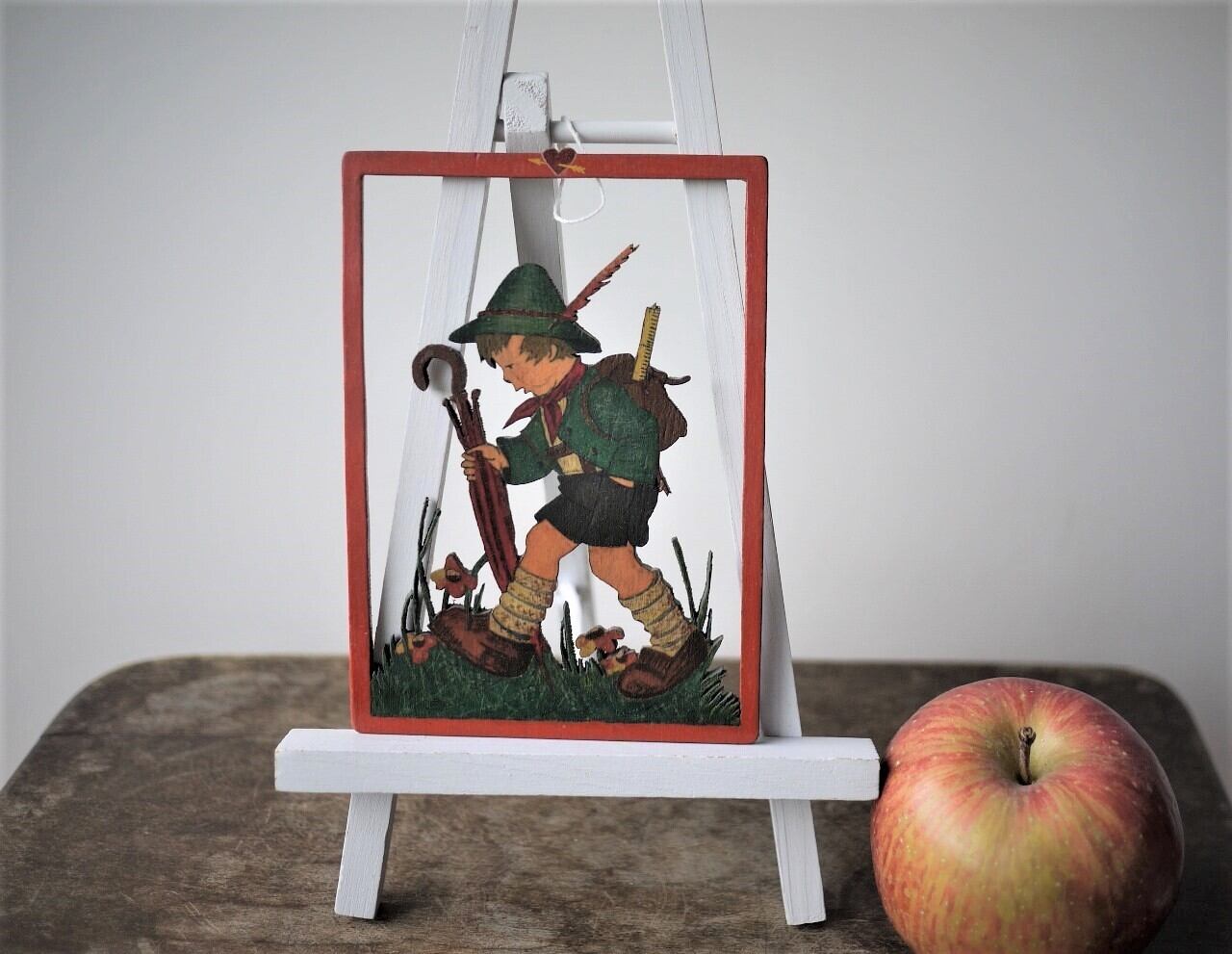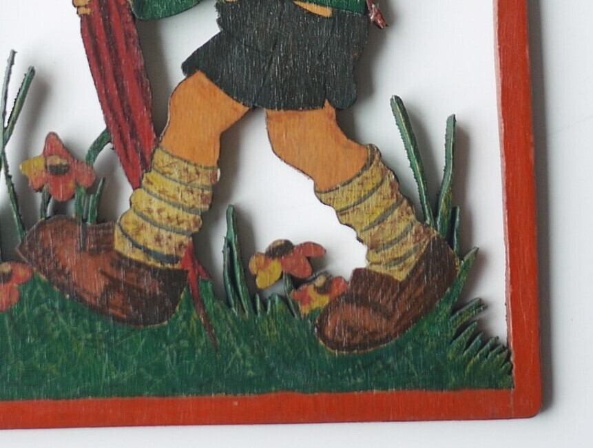 Märchen-Holzbild 壁飾り板絵 アルプス登山