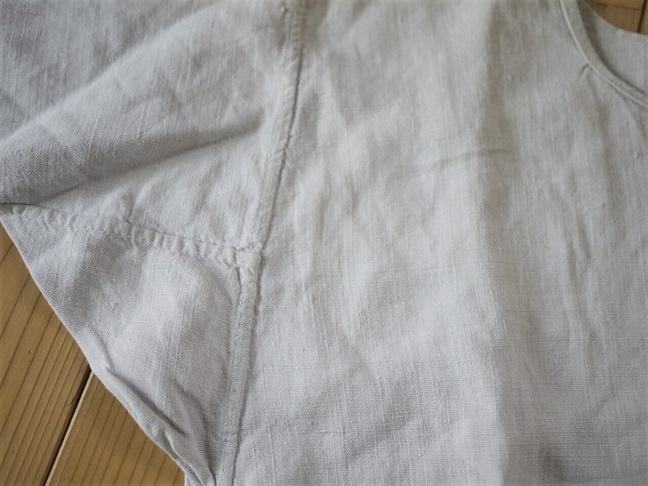 前見ごろ左側、後ろ見ごろ右側で布が継がれていて、