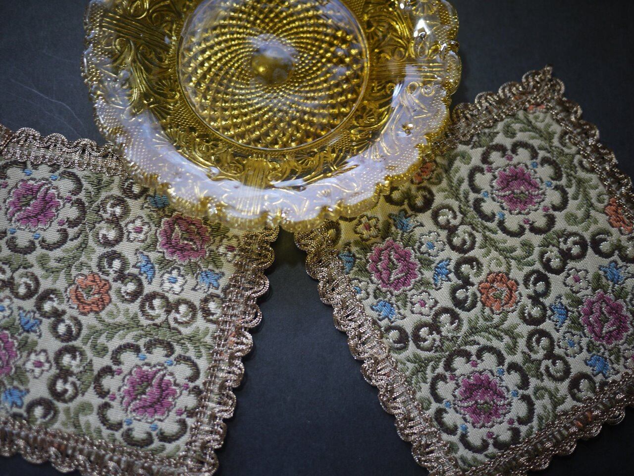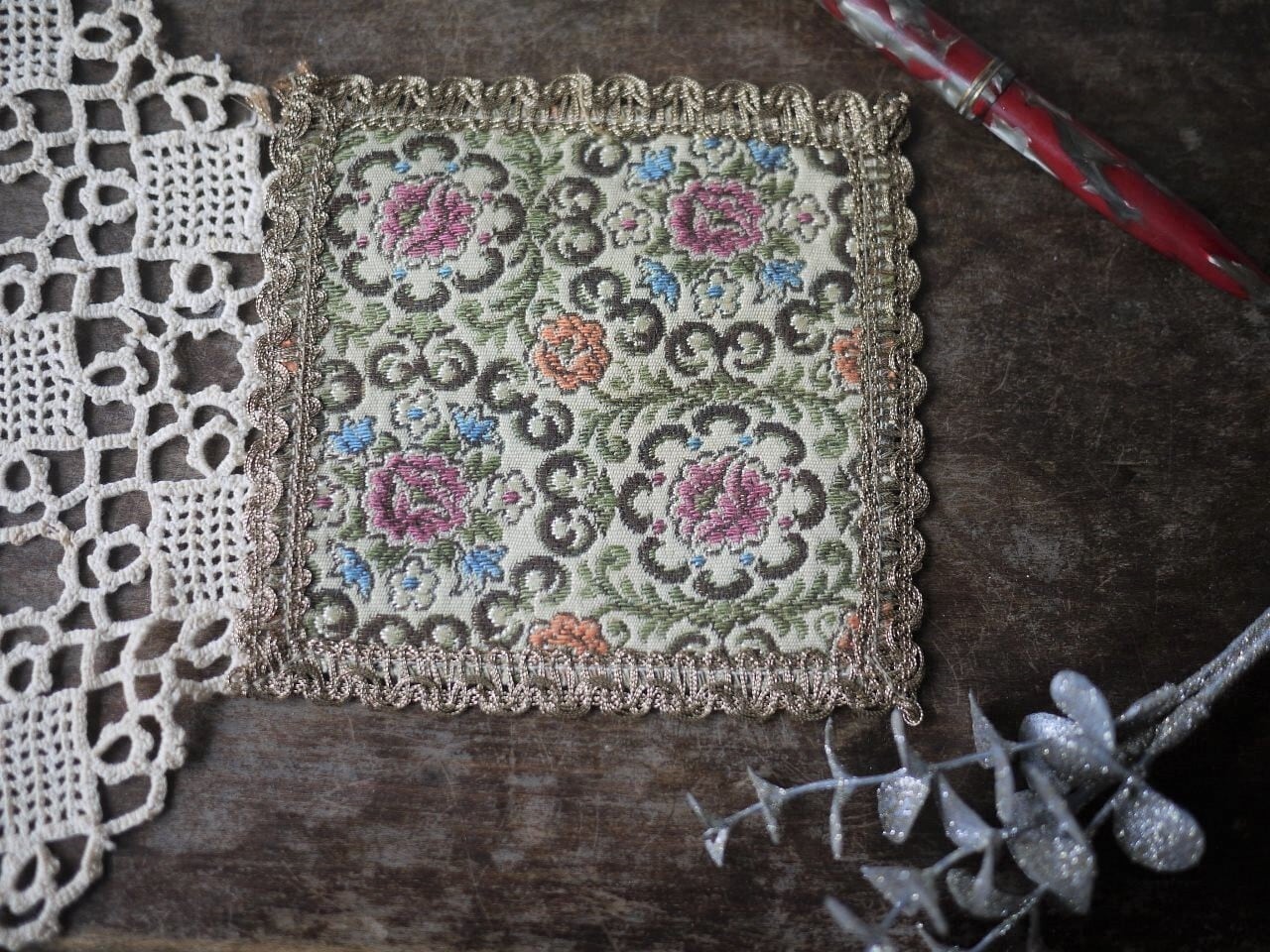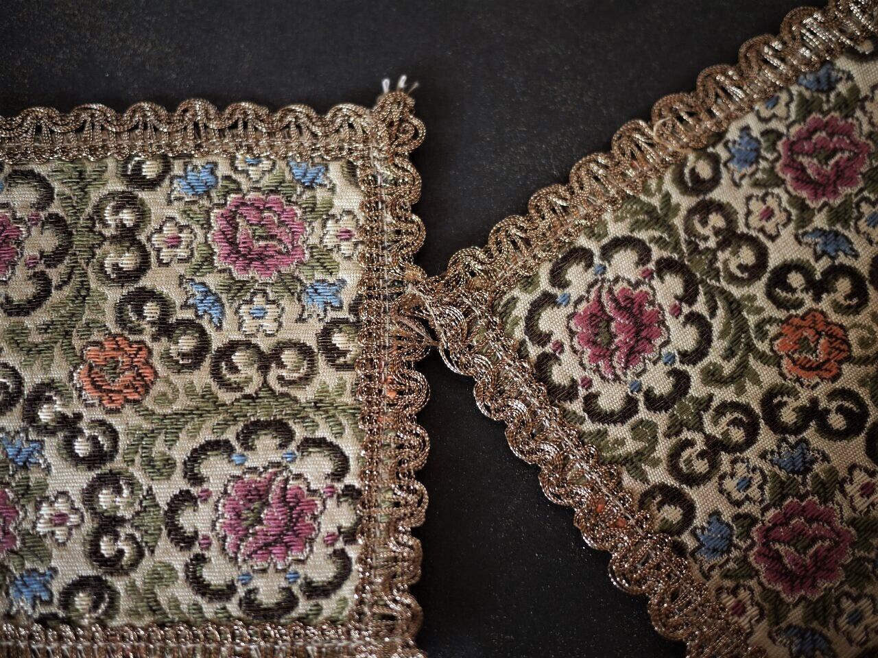 ローズスクエア敷物2枚組 ゴブラン織 ドイツヴィテージ