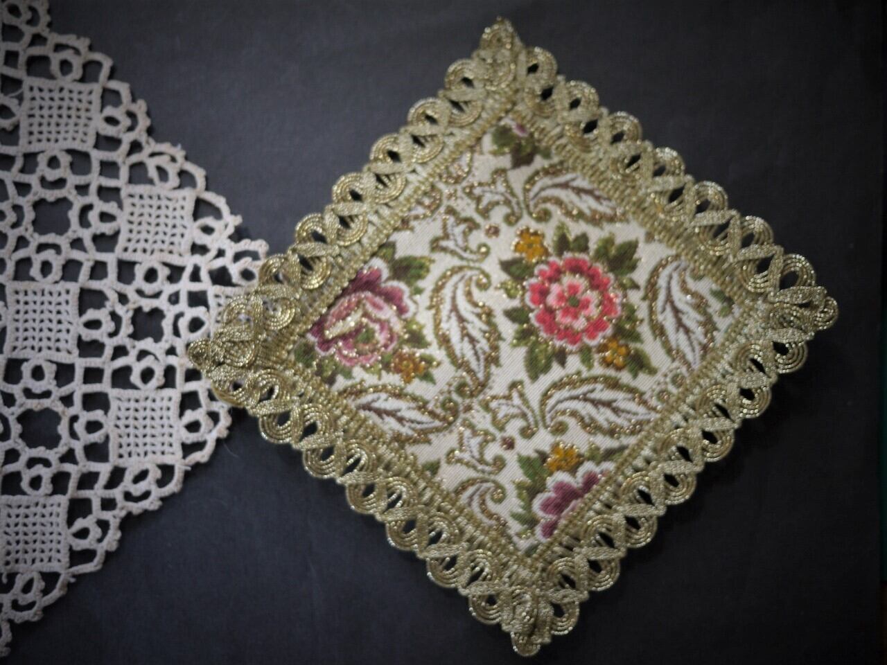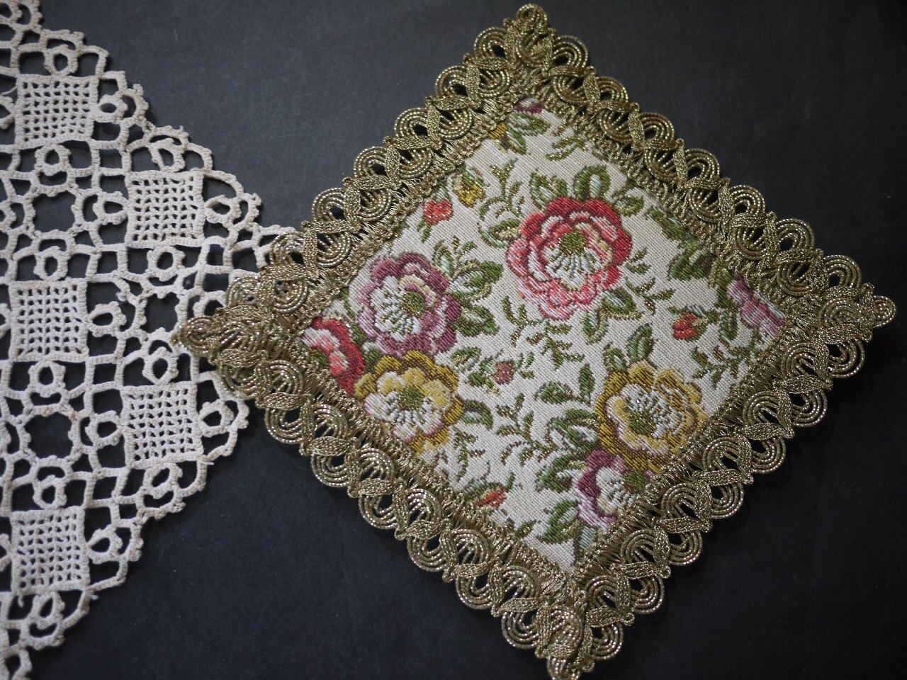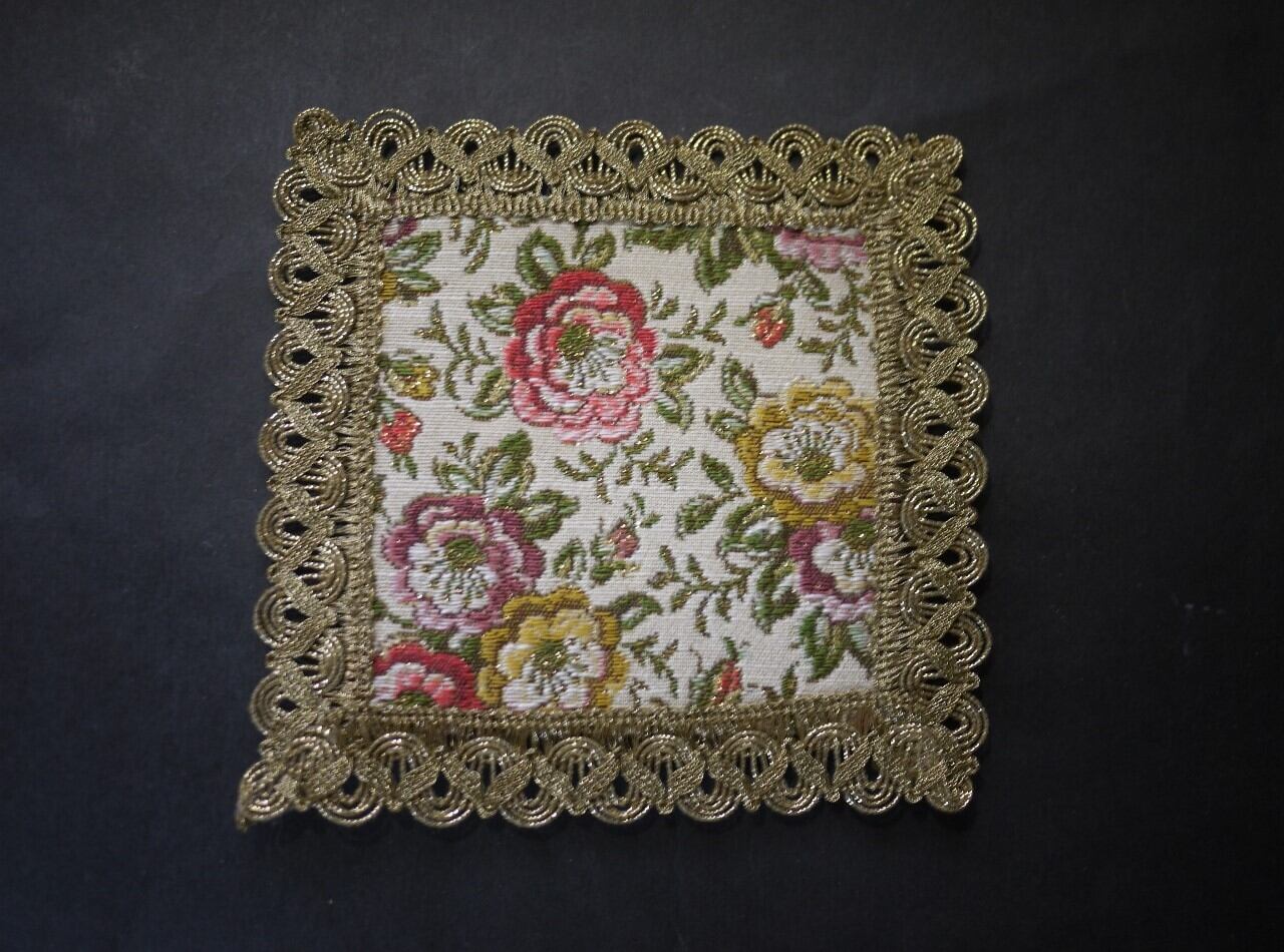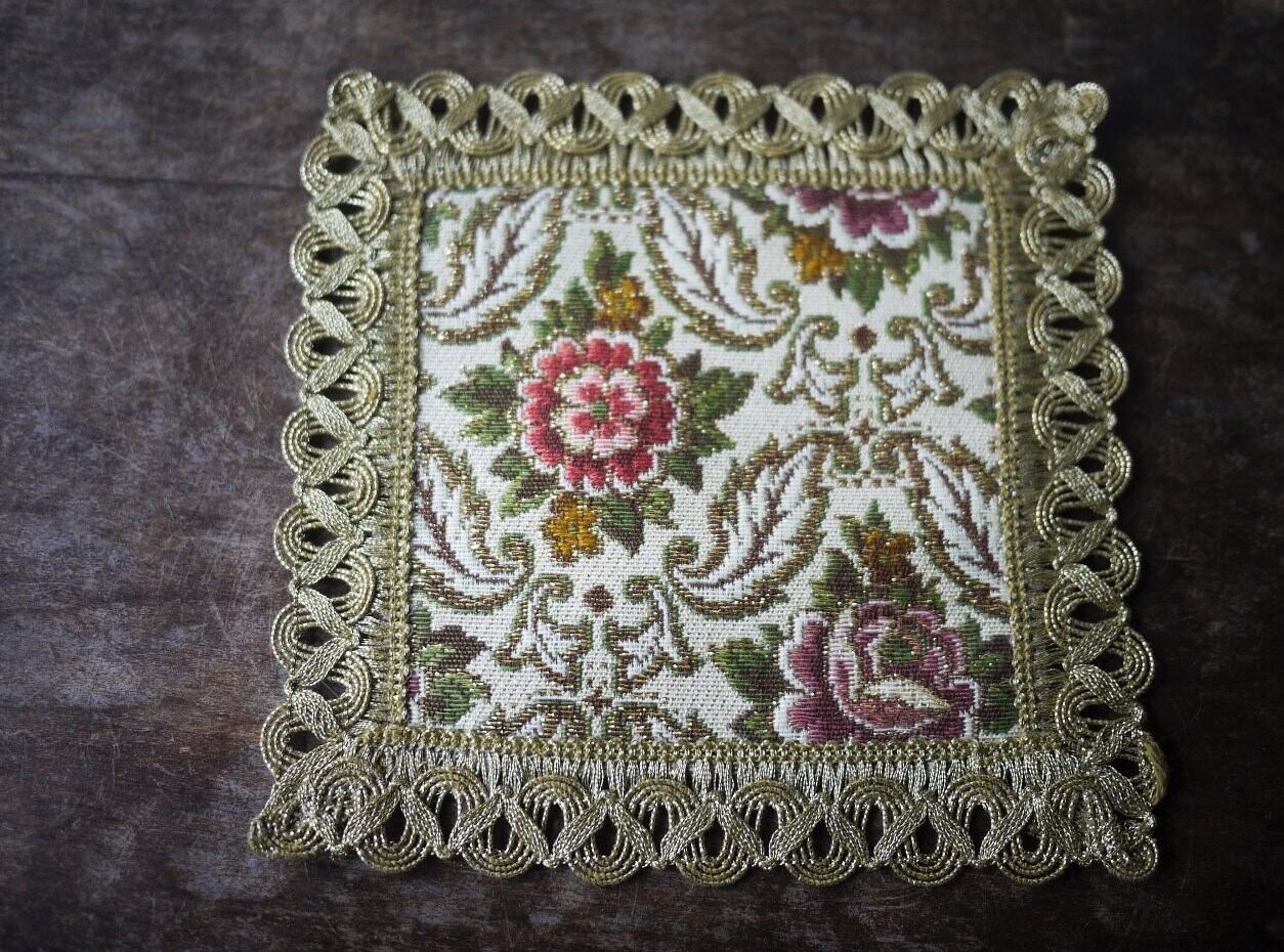 ローズスクエア敷物 ゴブラン織 ドイツヴィンテージ