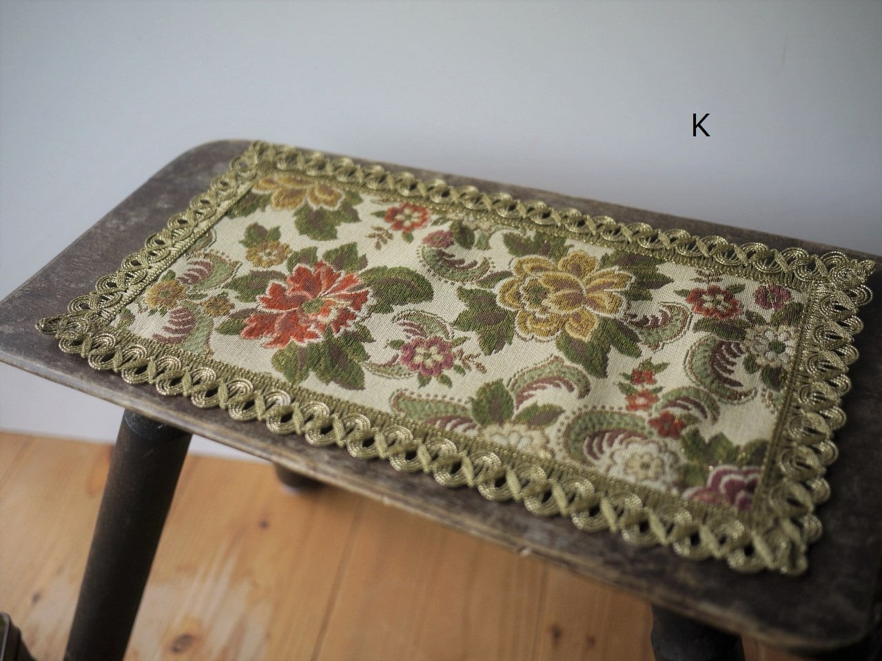 薔薇柄長方形敷物 ゴブラン織 ドイツヴィンテージ