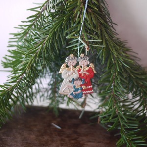 ヴィンテージ、三人の天使がかわいい錫のチャームです。
