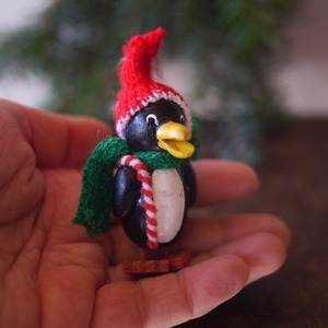 赤い帽子のオーナメント 木のペンギン ドイツ