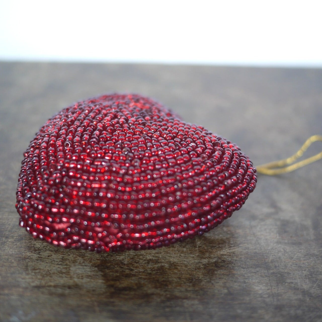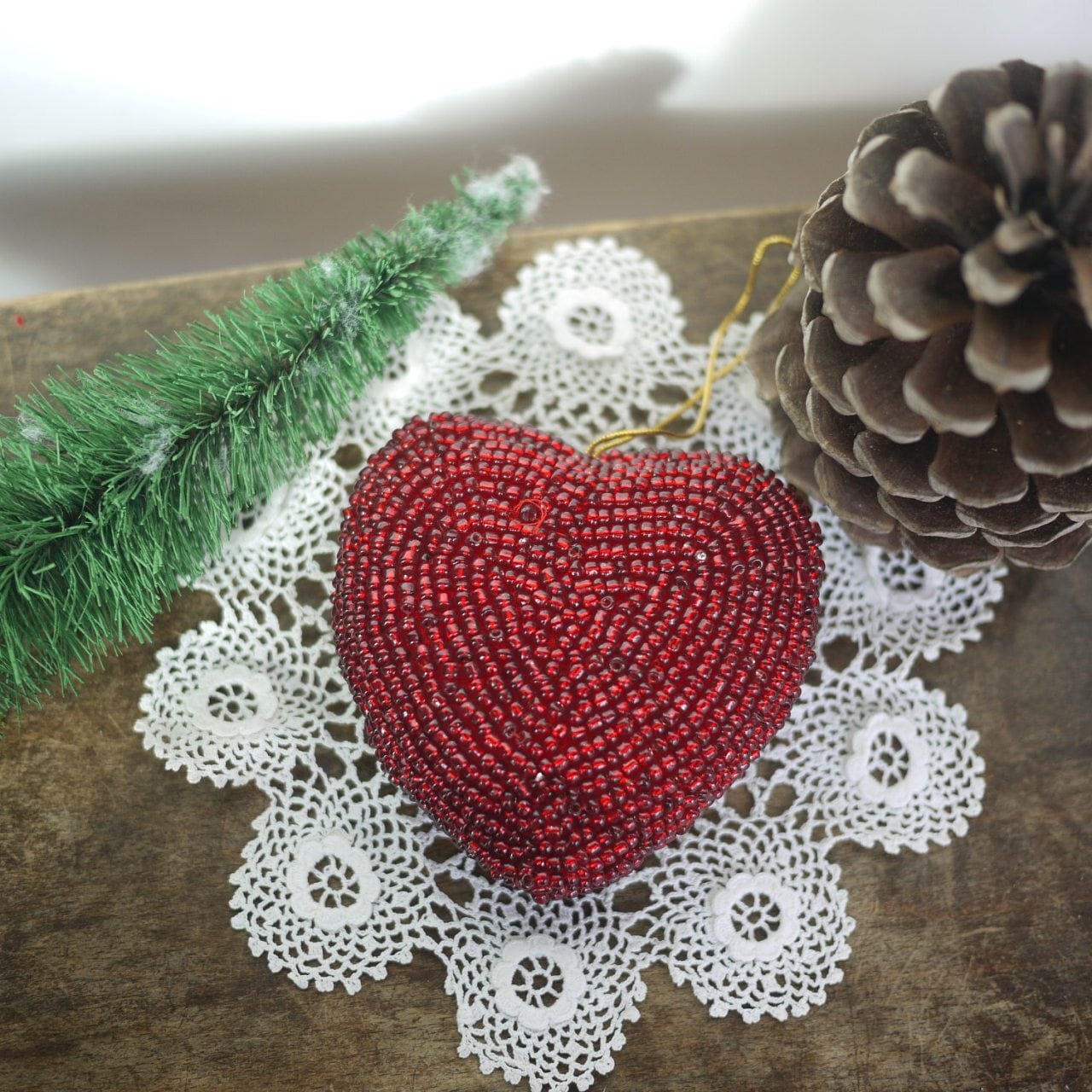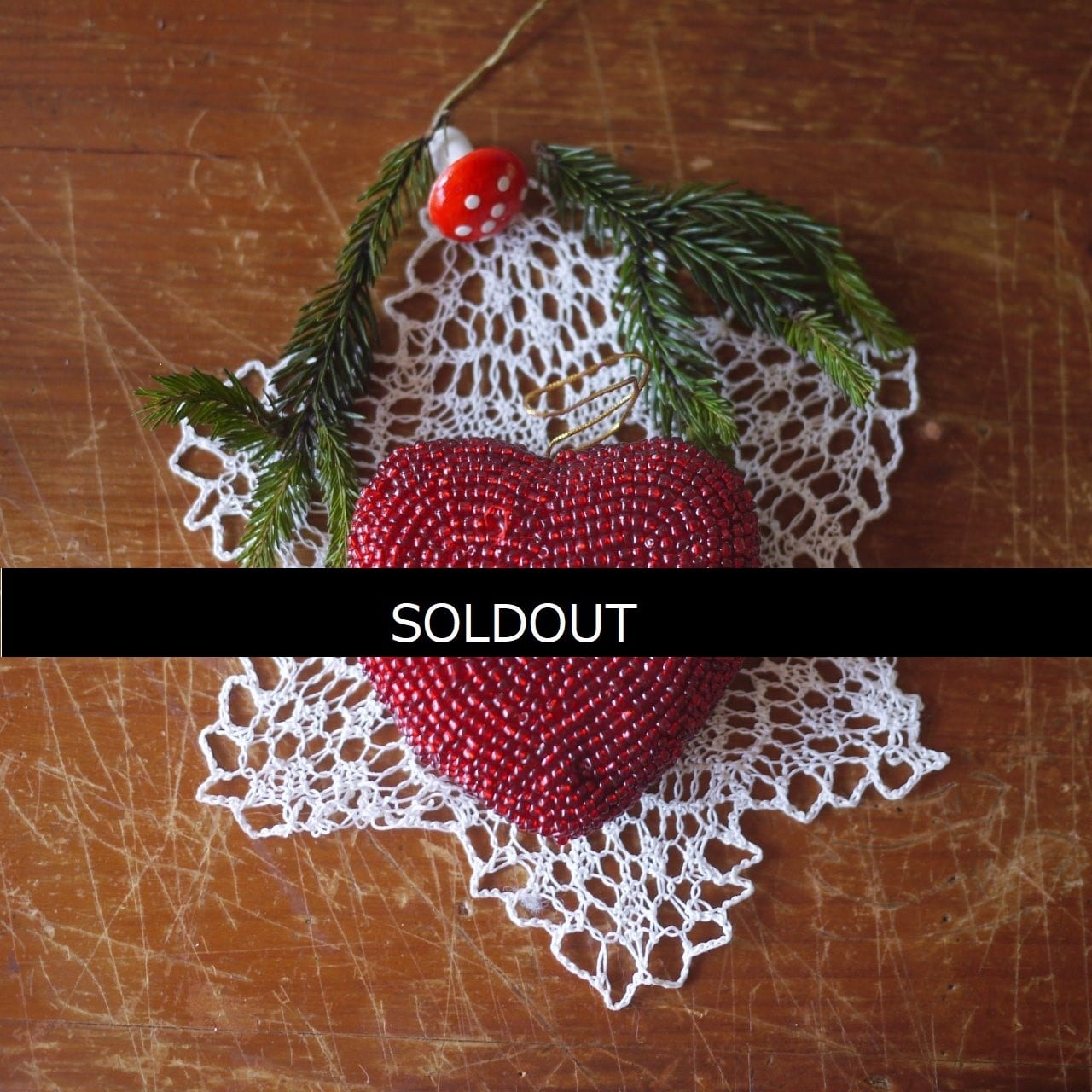 赤いハートのビーズクッション クリスマスオーナメント ドイツ