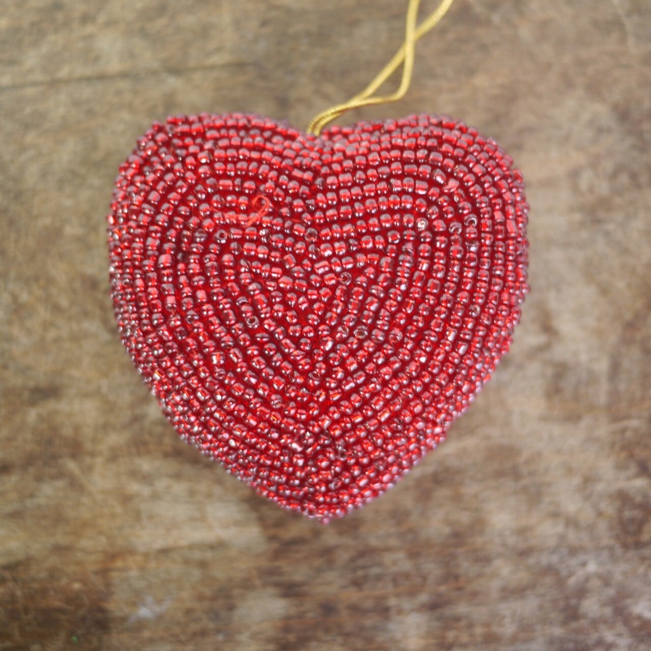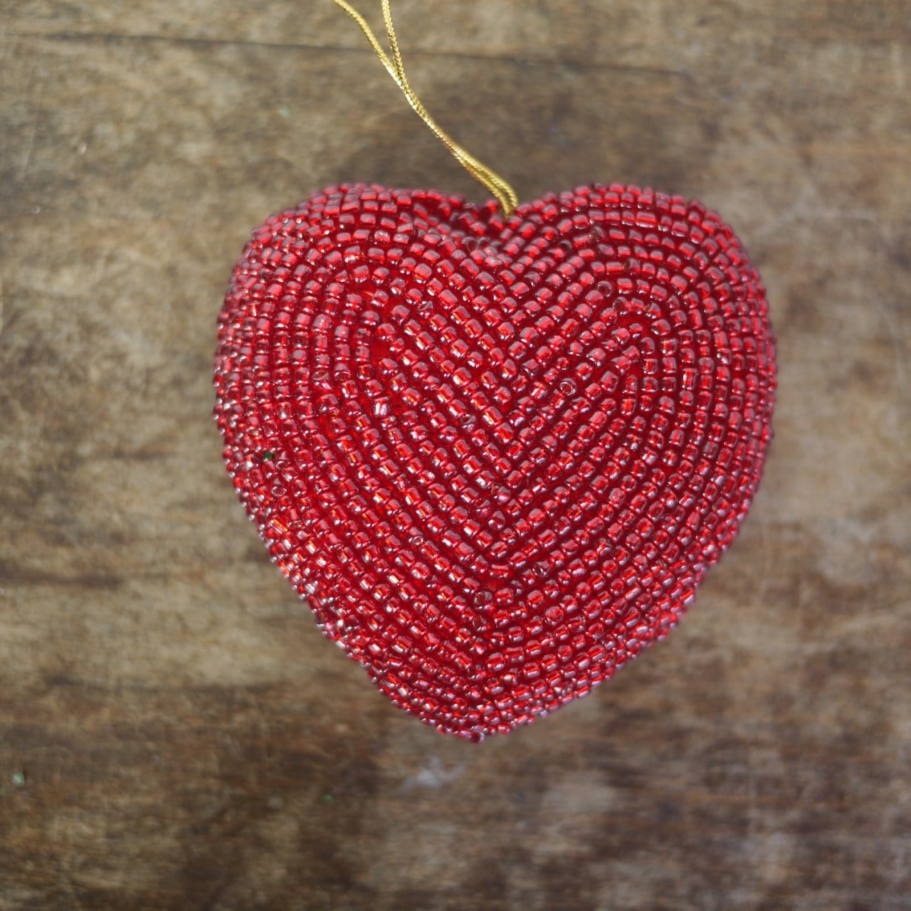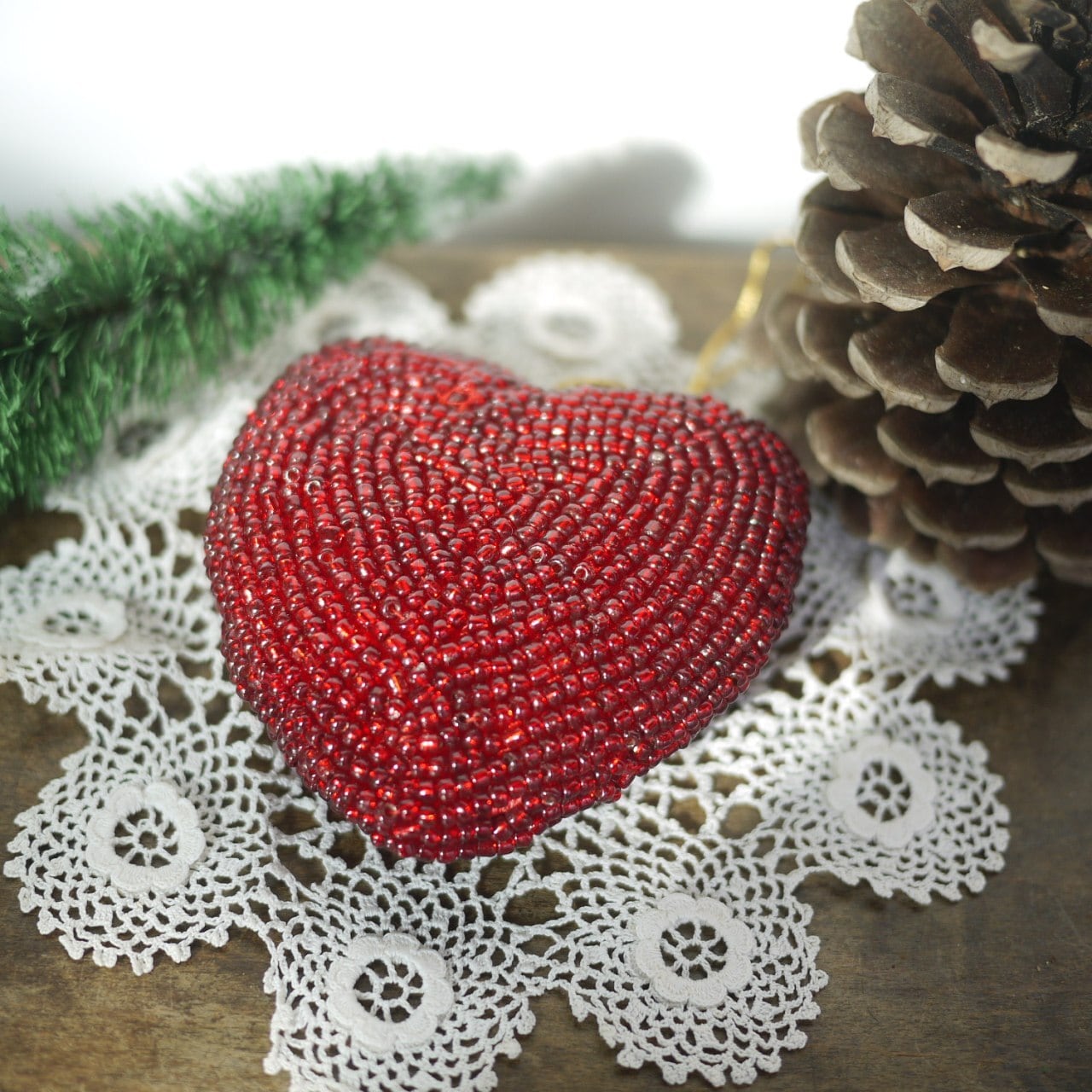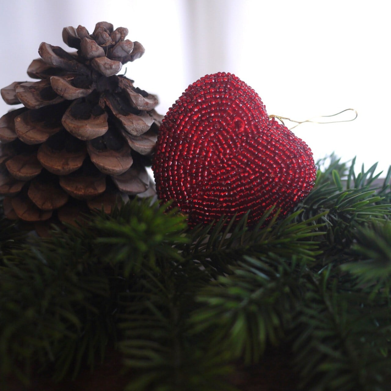 赤いハートのビーズクッション クリスマスオーナメント ドイツ