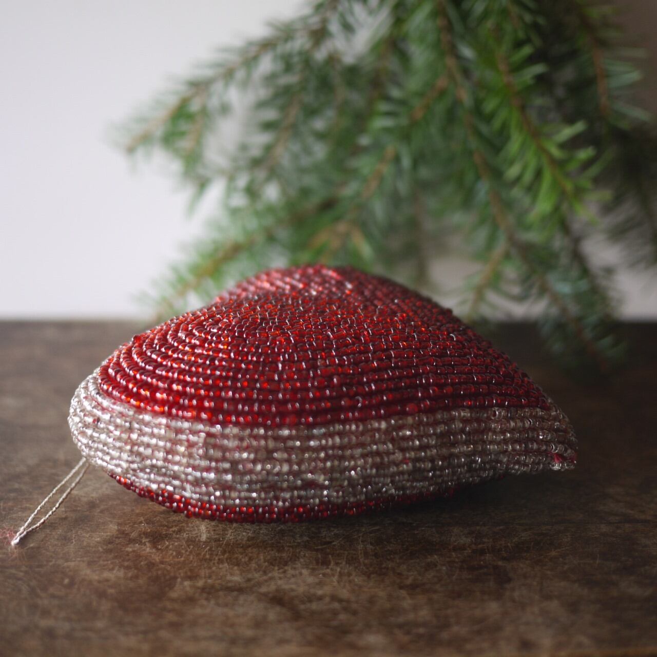赤と銀 ハートのビーズクッション クリスマスオーナメント ドイツ
