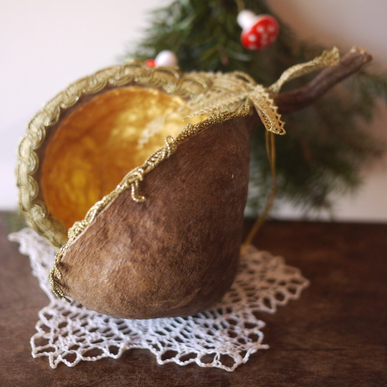 木の実の内側をゴールドでペイント。