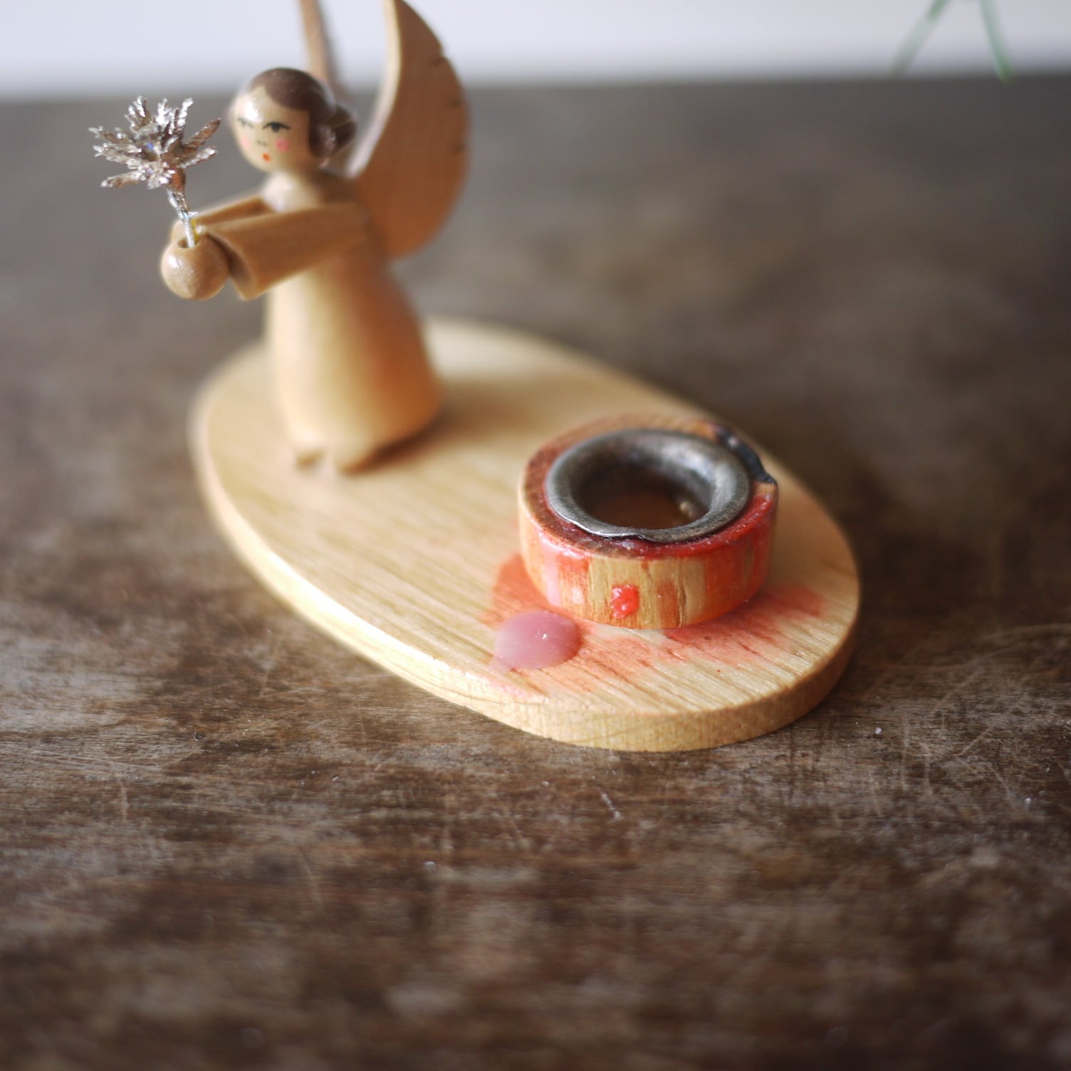 キャンドル立て部分に焦げ跡,とけた蝋があります。