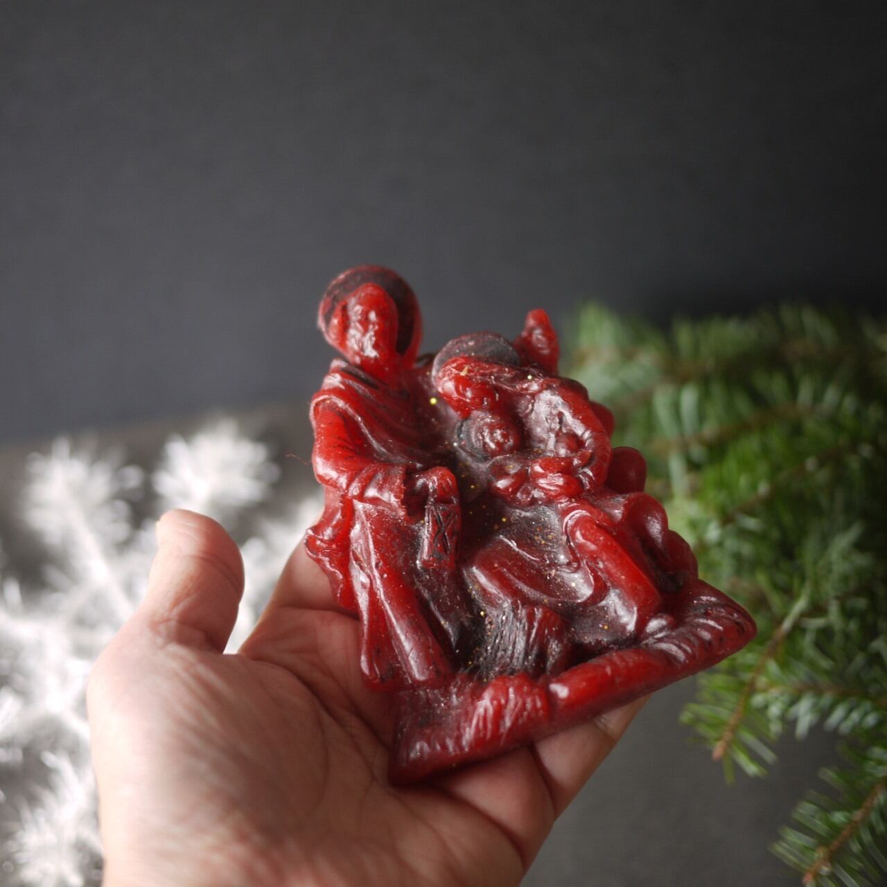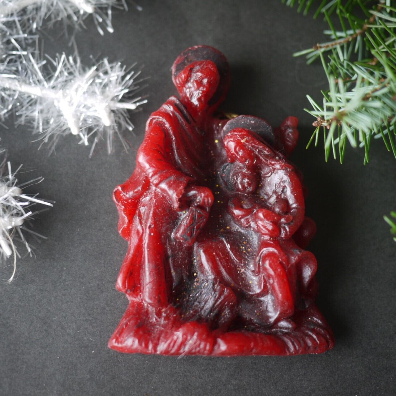 クリスマスツリーを飾った赤いワックス(蝋)オーナメント、