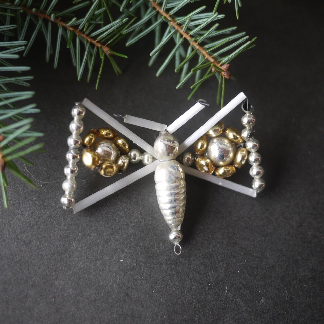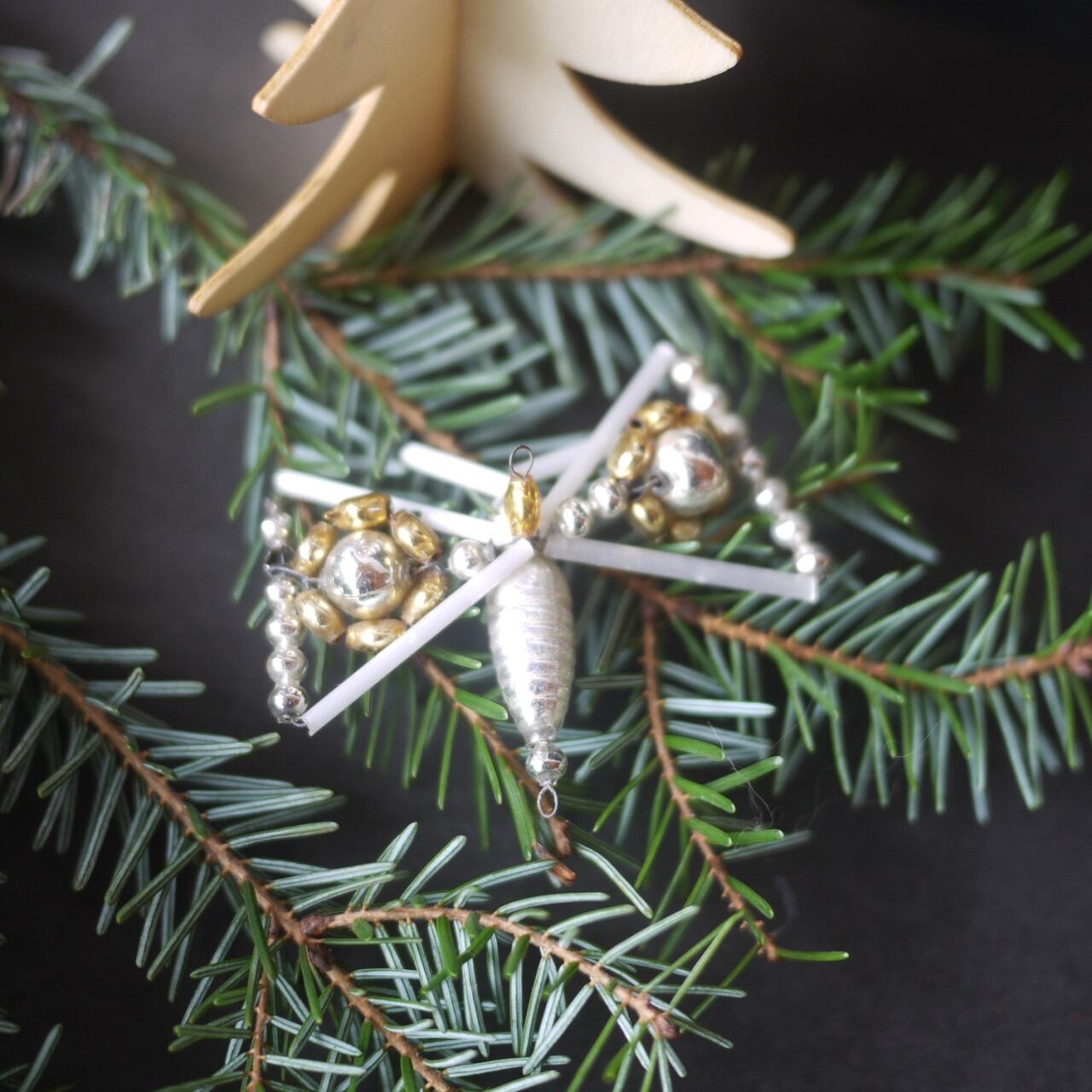 クリスマスオーナメント 蛾 ガラスビーズ チェコ