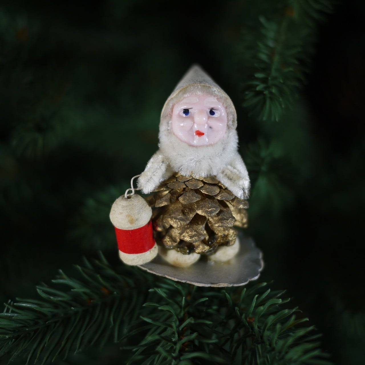 松ぼっくりのボディ、ユニークな白いお顔のエルフ?ドワーフ?小人?