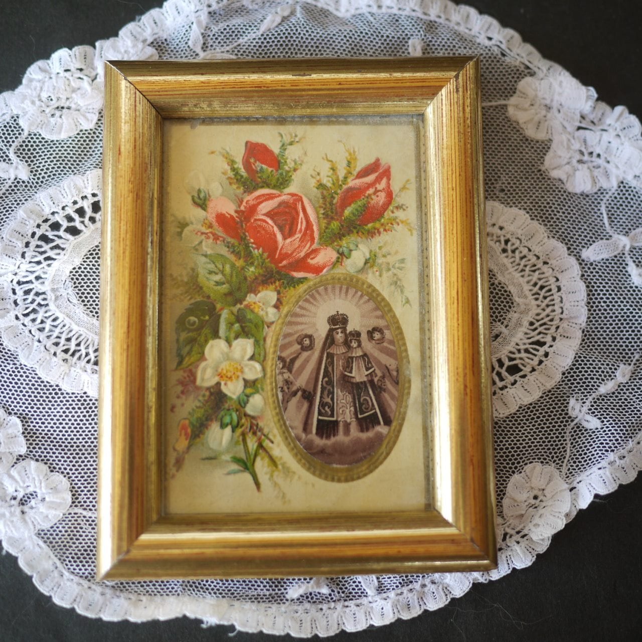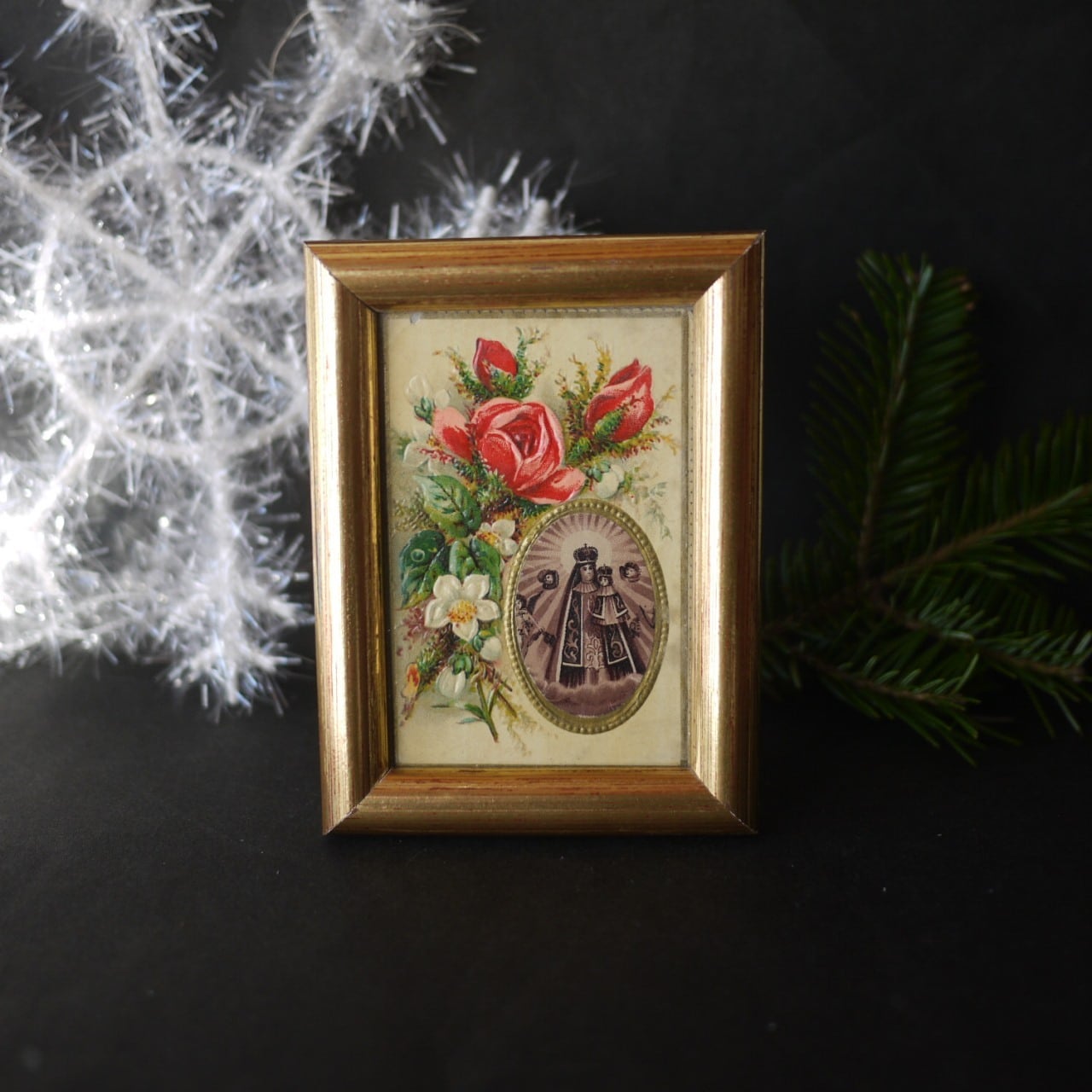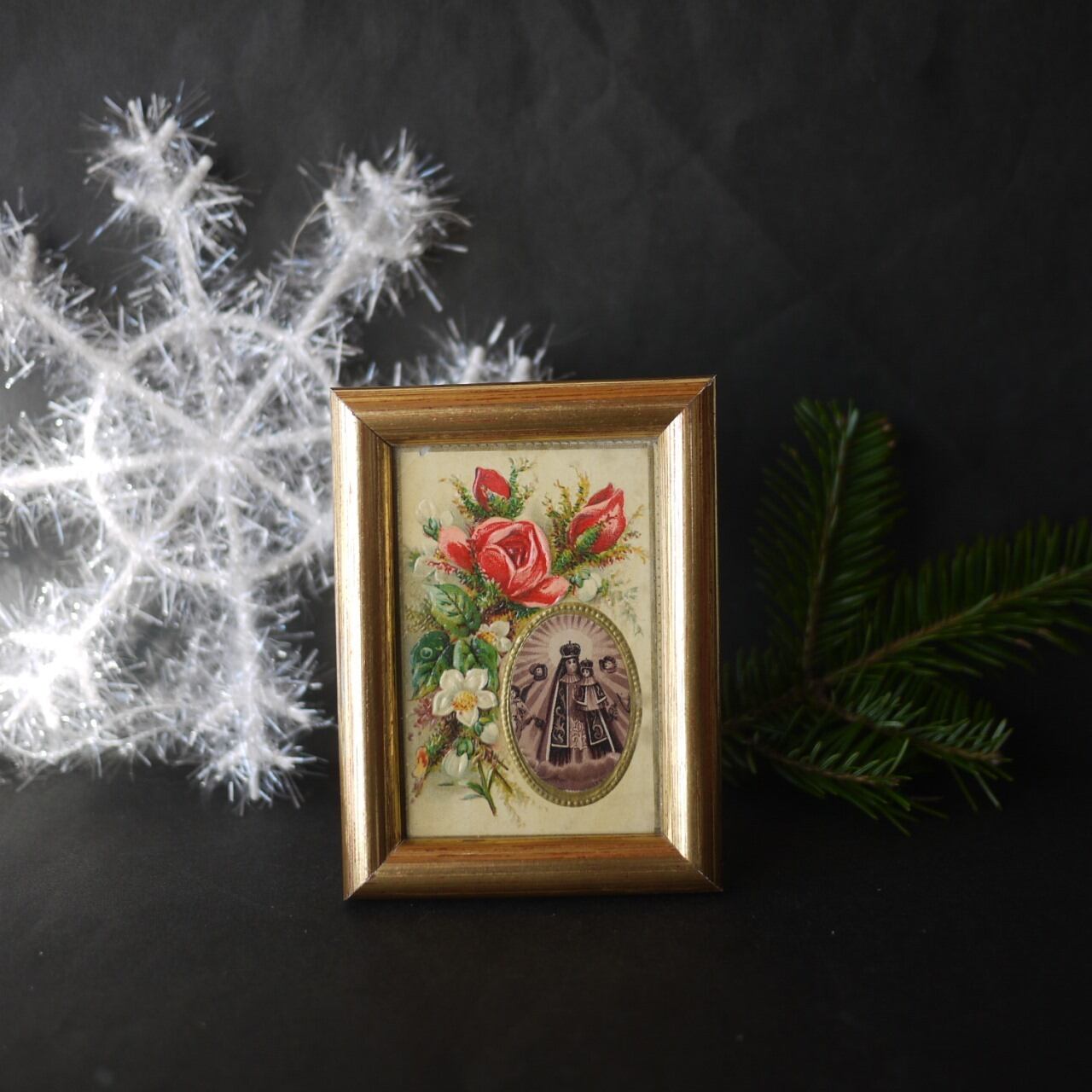 バラの花束と聖母子像 ホーリーカードフレーム