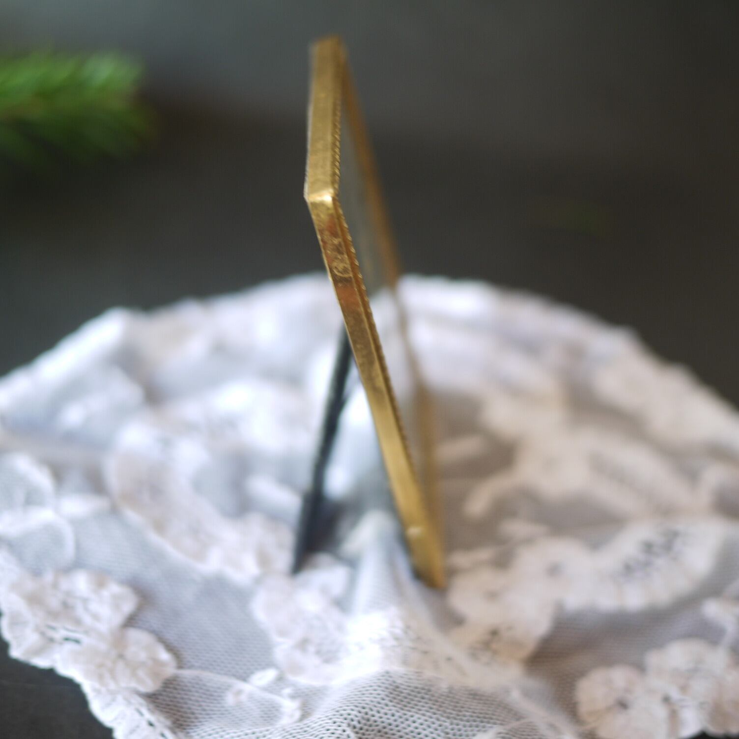 ガラスと金色に着色された刻み模様の入った金属フレームです。