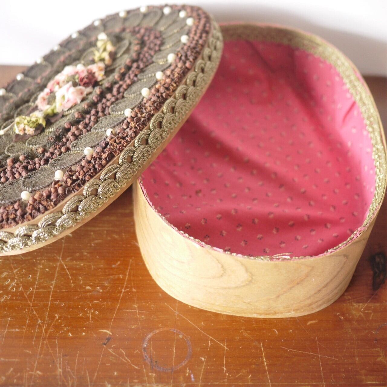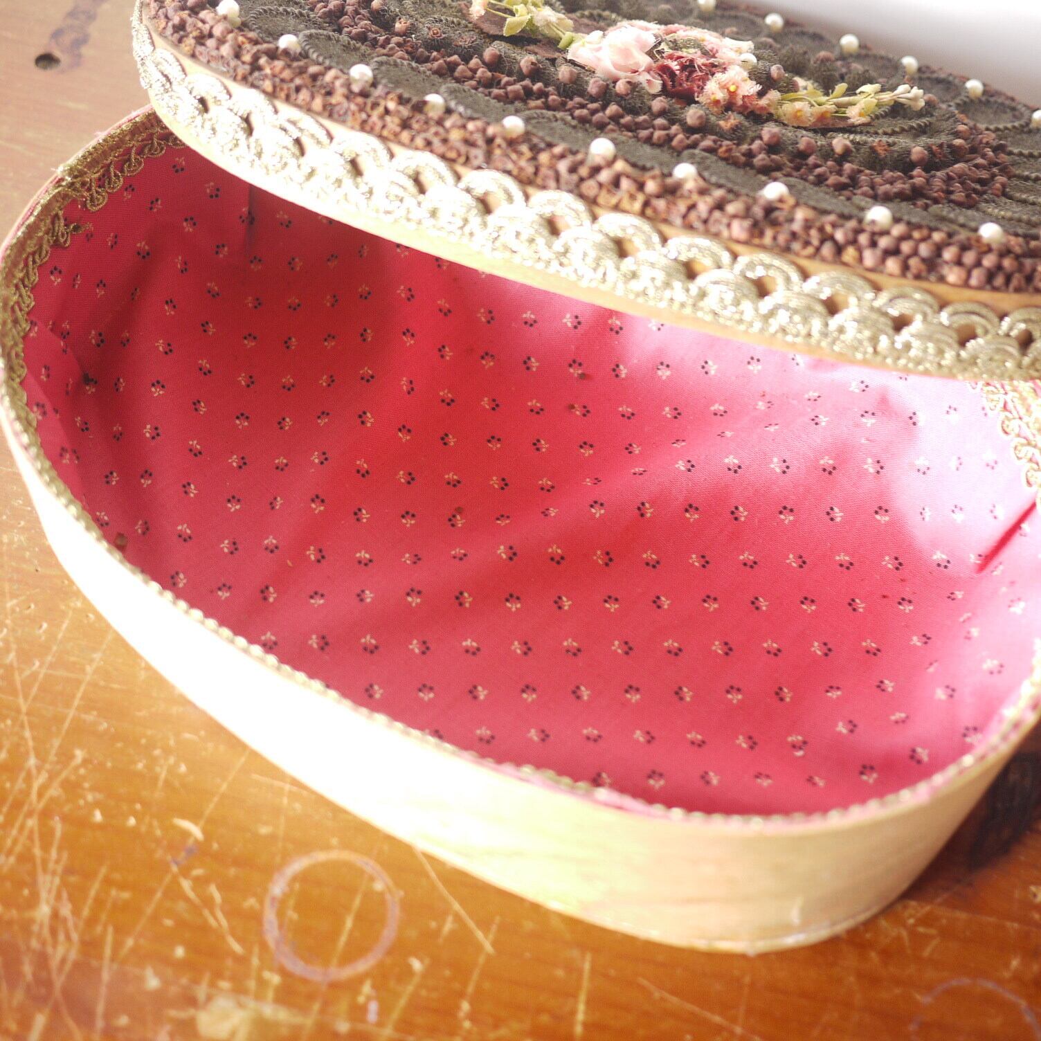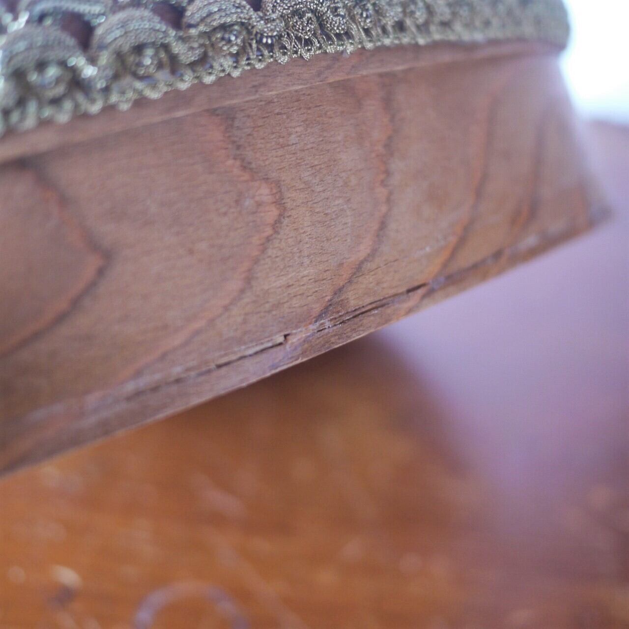 曲げわっぱのように、薄い木を曲げて作った箱です。