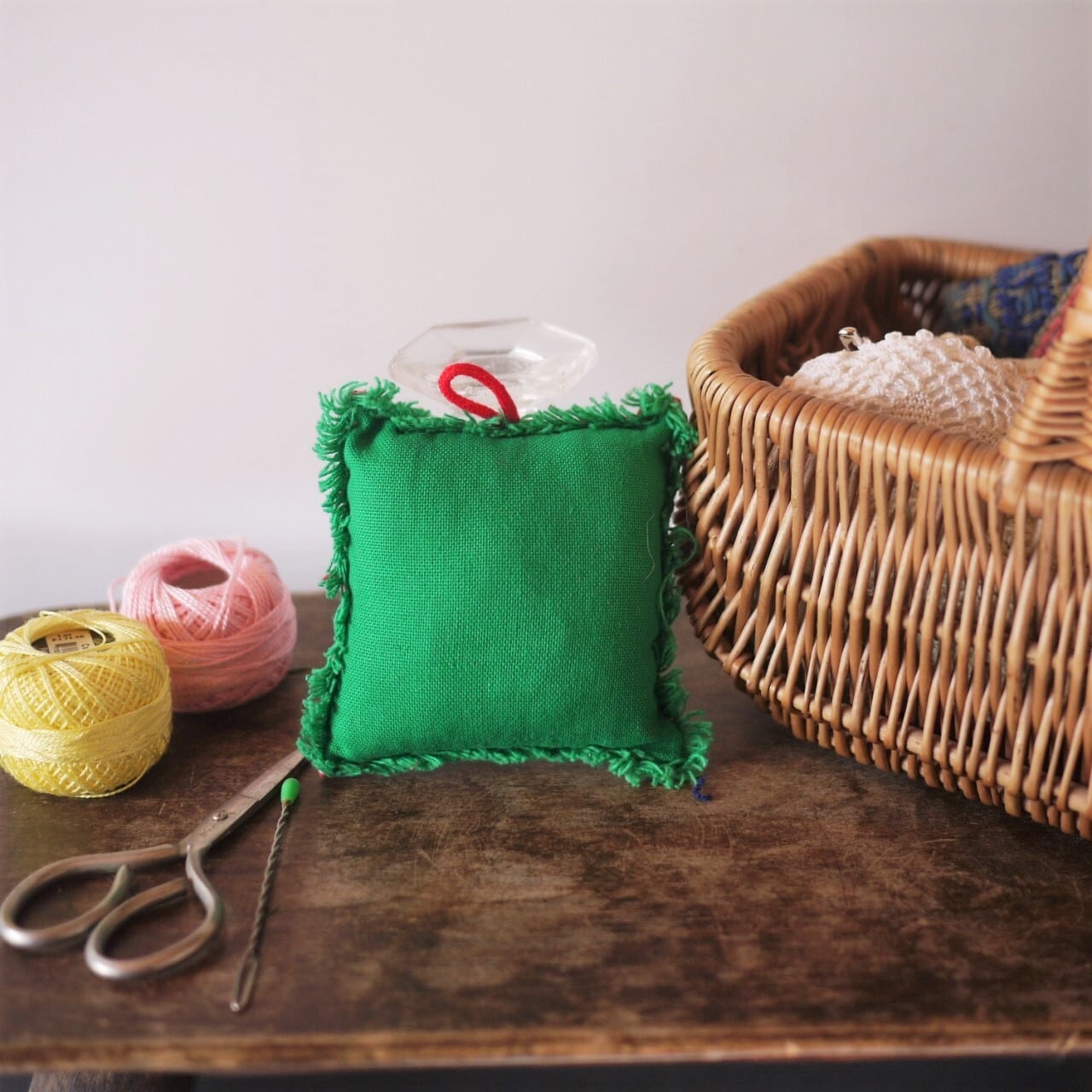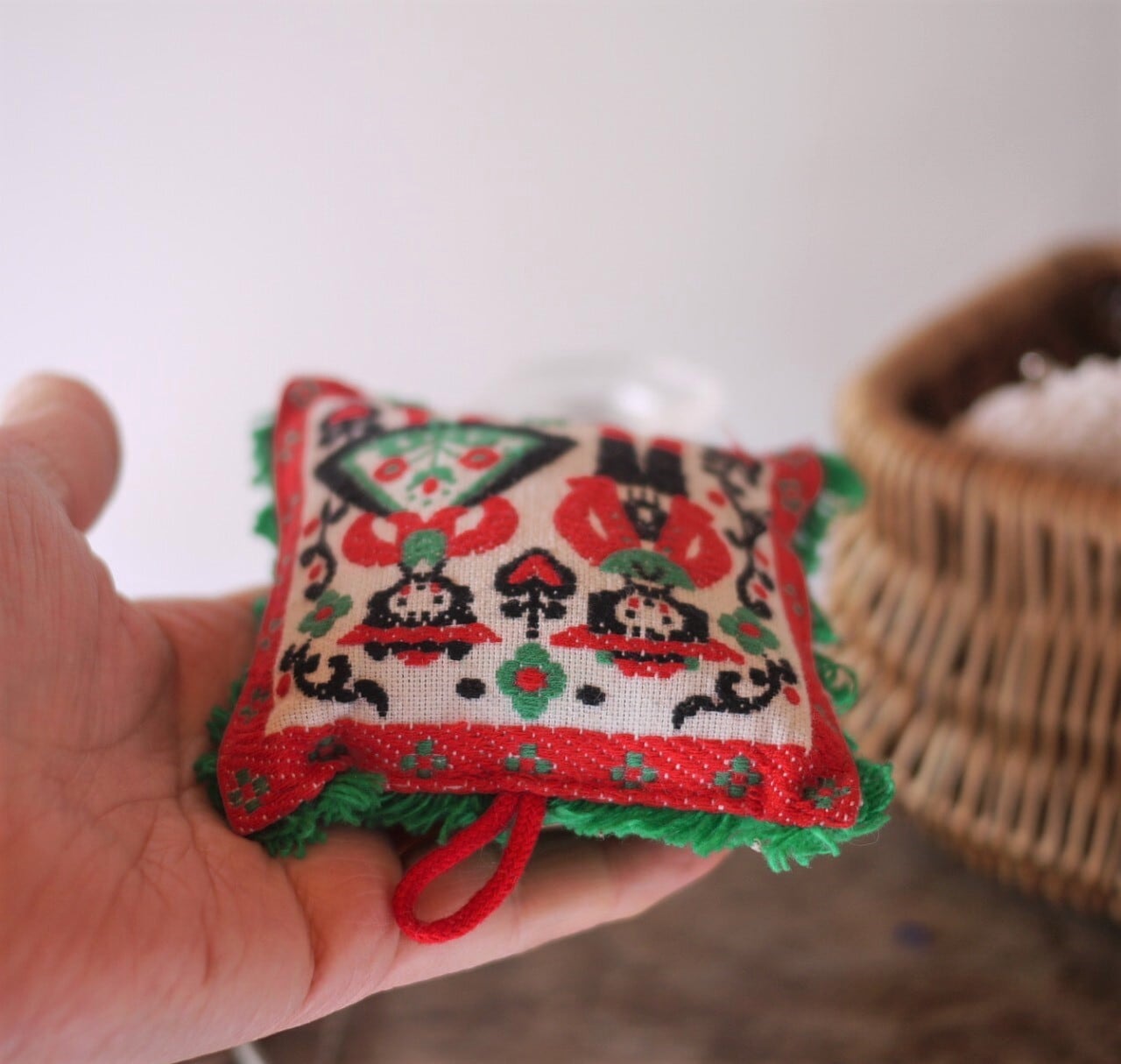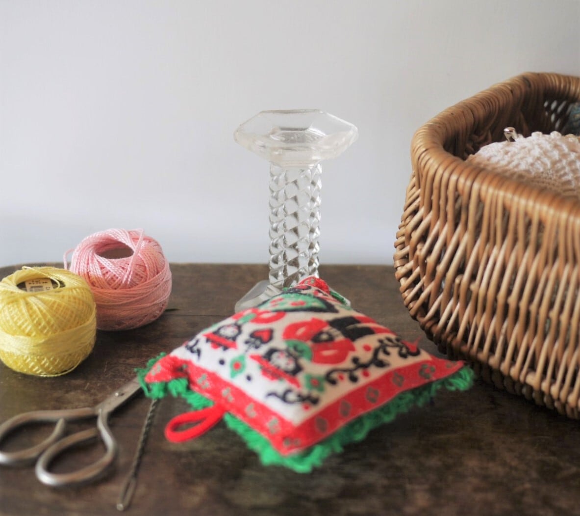 ヴィンテージのかわいい機械刺しゅうクロスをつかった